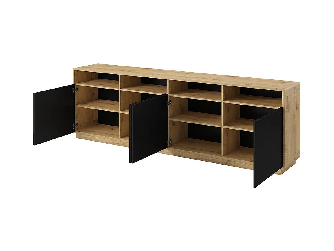 Buffet XL 240cm collection VILLA. Couleur chêne et noir. 4 portes et 4 niches