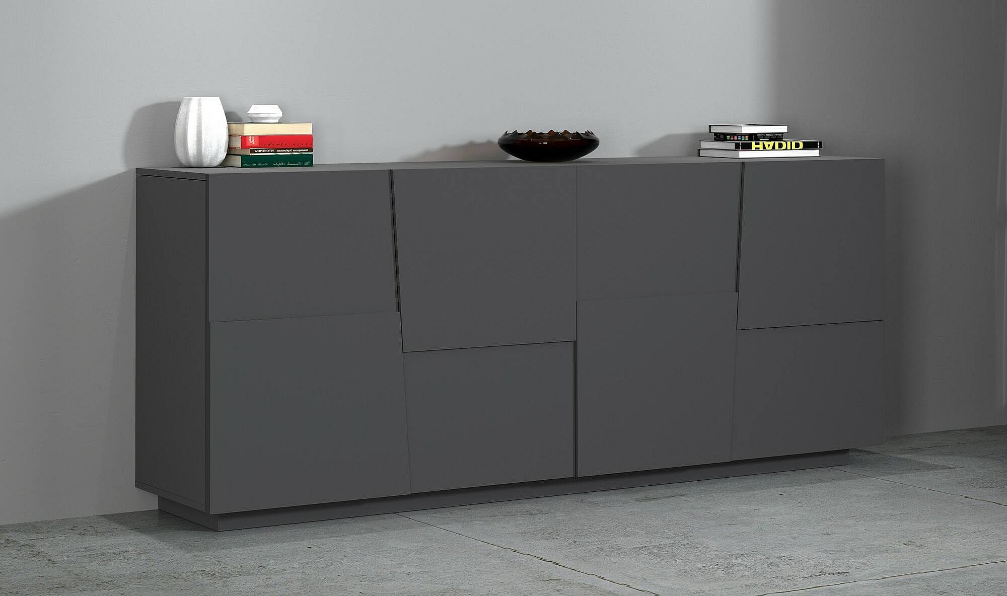 Buffet Yago, Buffet de salon, Buffet de salon moderne avec 4 portes, 200x44h86 cm, Anthracite