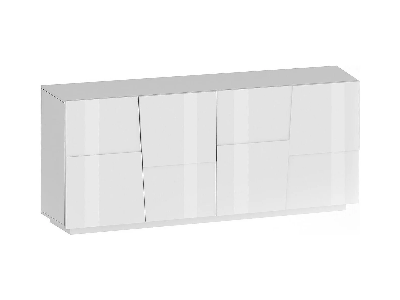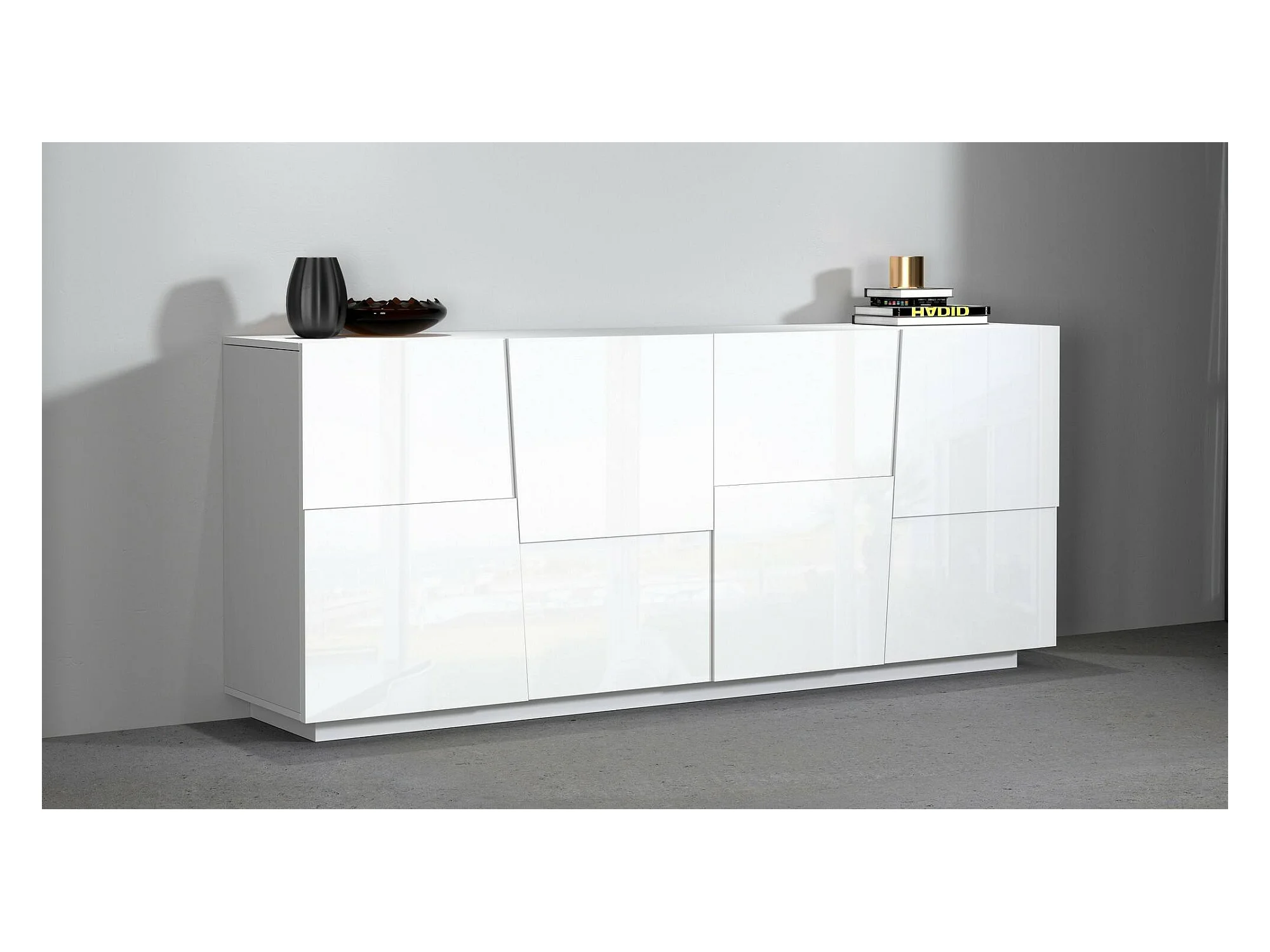 Buffet Yago, Buffet de salon, Buffet de salon moderne avec 4 portes, 200x44h86 cm, Blanc brillant