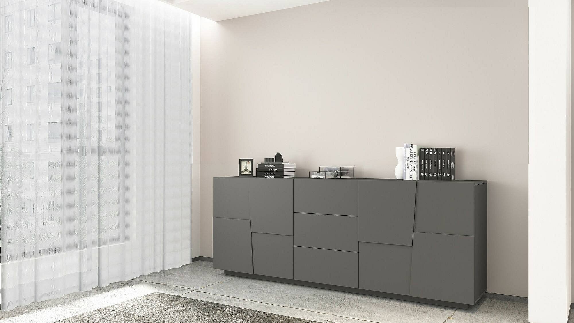 Buffet Yoel, Buffet de salon, Buffet de salon avec 4 portes et 3 tiroirs, 220x44h86 cm, Anthracite