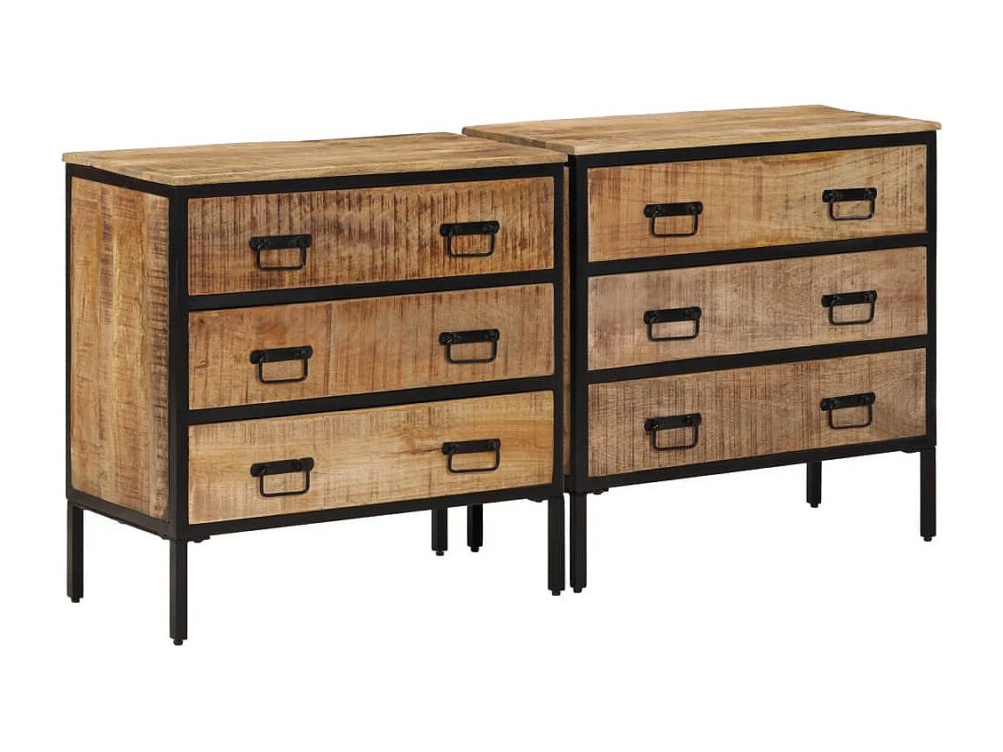 Buffets 2 pcs 70x35x70 cm bois de manguier brut massif