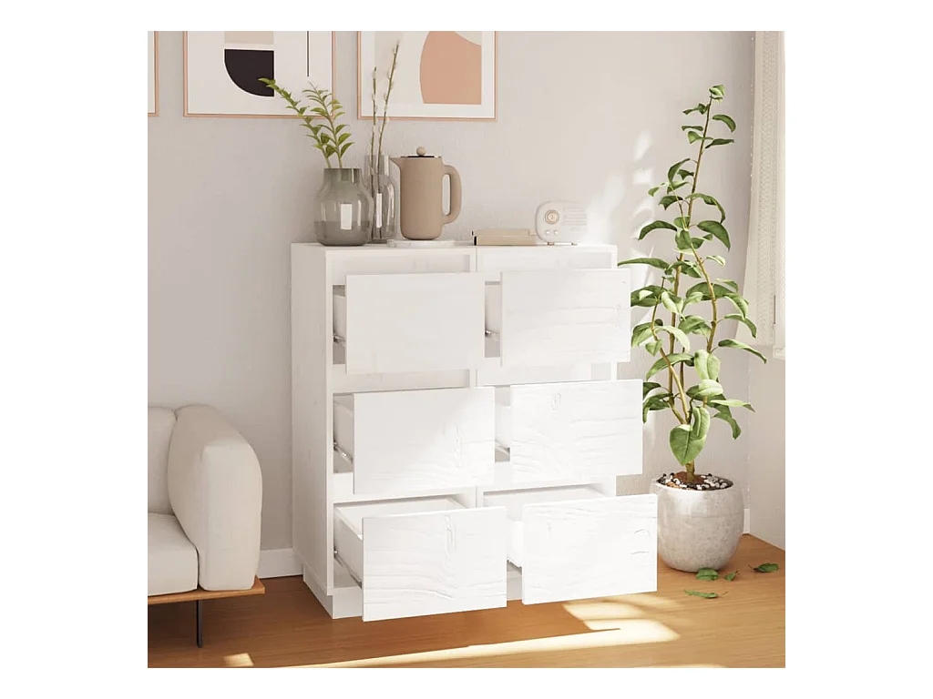 Buffet Blanc 60x34x75 cm Bois massif de pin