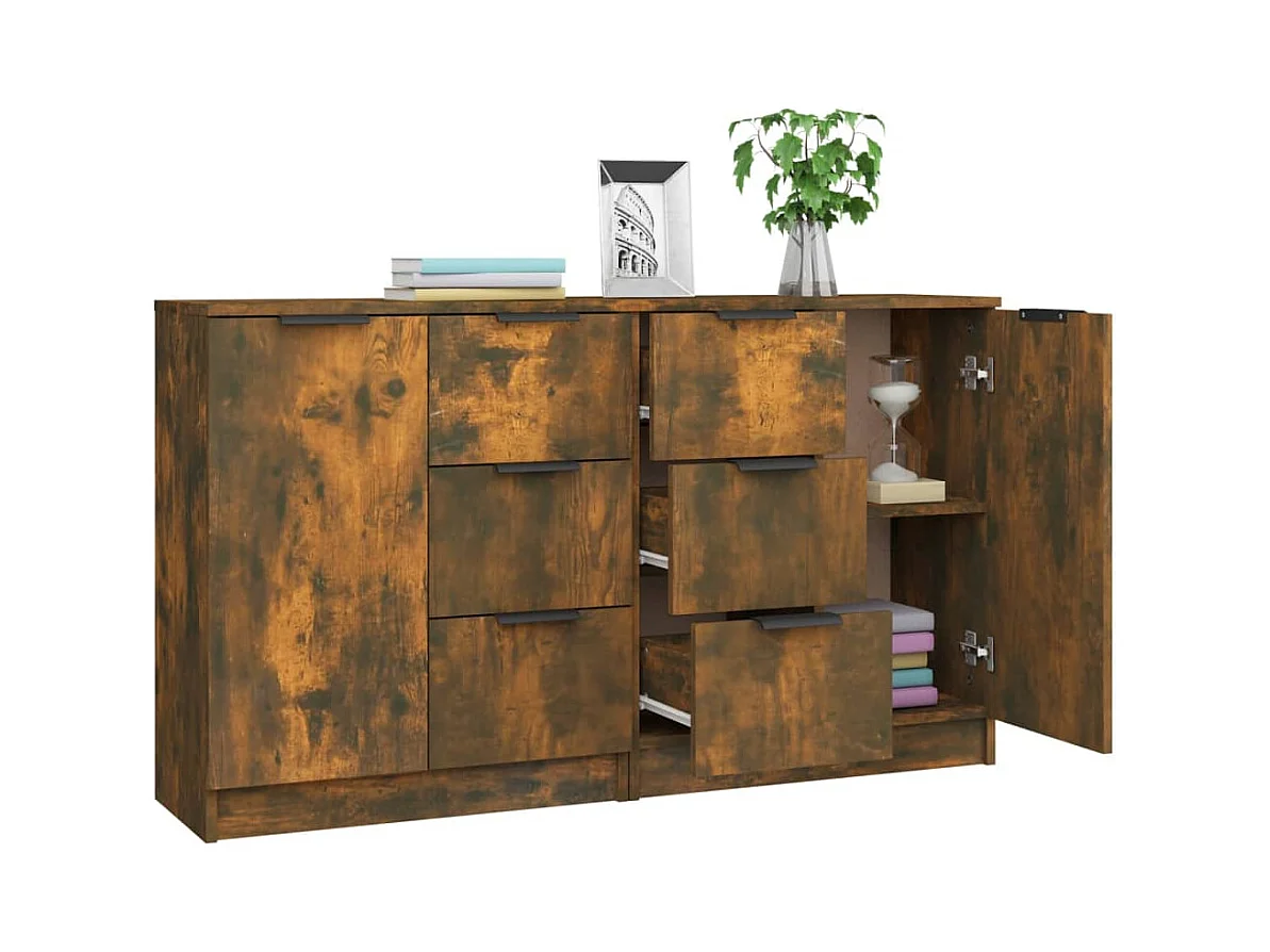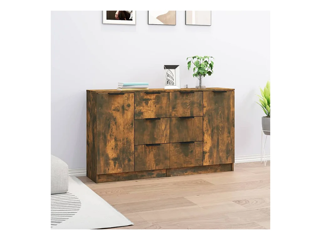 Buffets 2 pcs Chêne fumé 60x30x70 cm Bois d'ingénierie