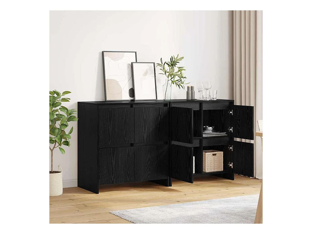 Buffets 3 pièces en bois d'ingénierie chêne noir de