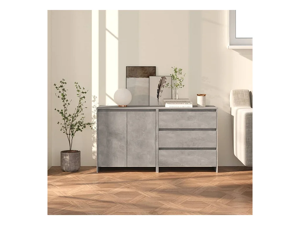 Buffets 2 pcs Gris béton Bois d'ingénierie