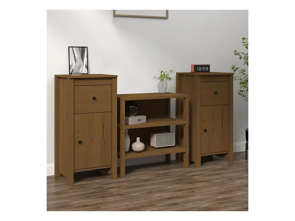 Buffets 2 pcs Marron miel 40x35x80 cm Bois massif de pin EGER86182