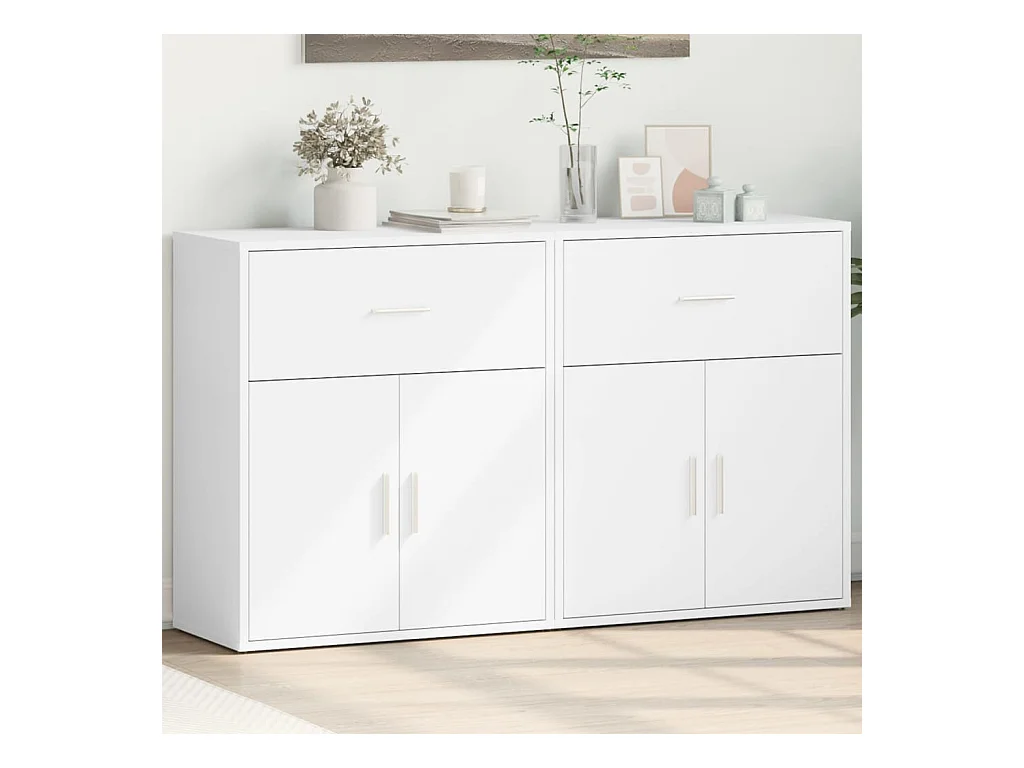 Buffets 2 pièces blanc 60x31x70 cm bois d'ingénierie