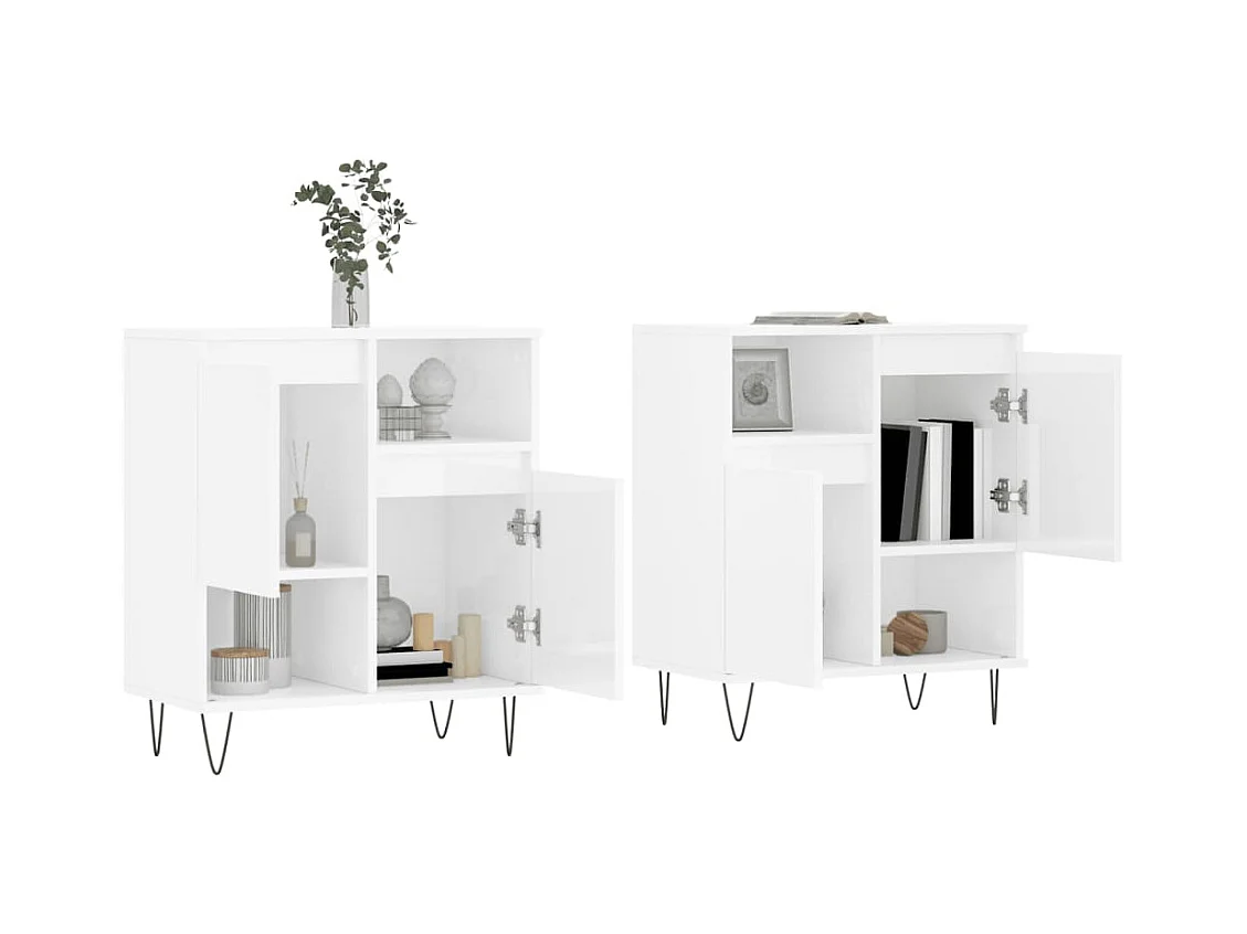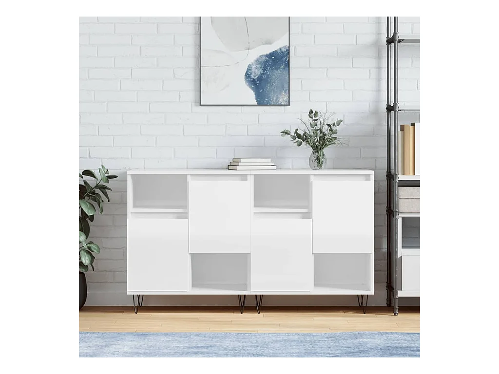 Buffets 2 pièces blanc brillant bois d'ingénierie