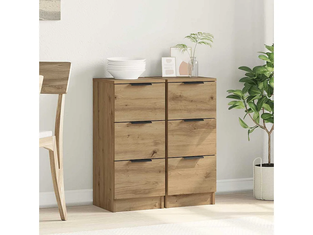 Buffets 2 pièces chêne artisanal 30x30x70 cm bois d'ingénierie