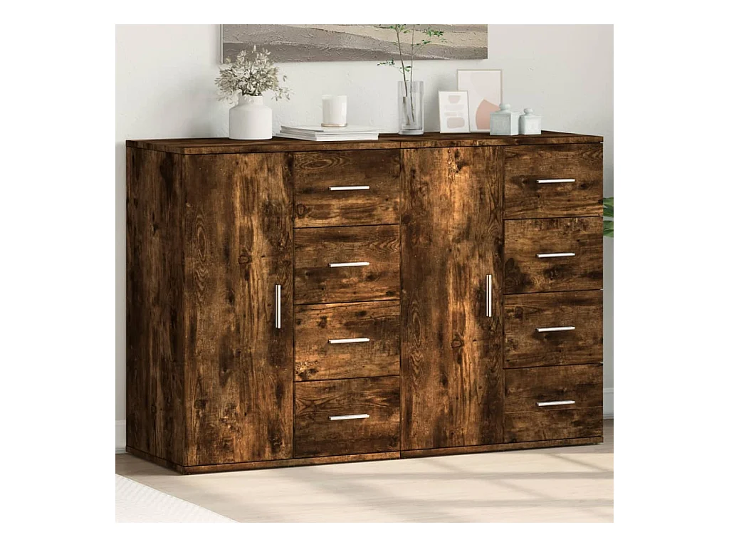 Buffets 2 pièces chêne fumé 59x39x80 cm bois d'ingénierie