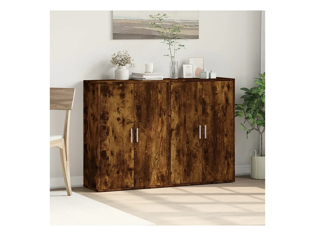 Buffets 2 pièces chêne fumé 60x31x84 cm bois d'ingénierie