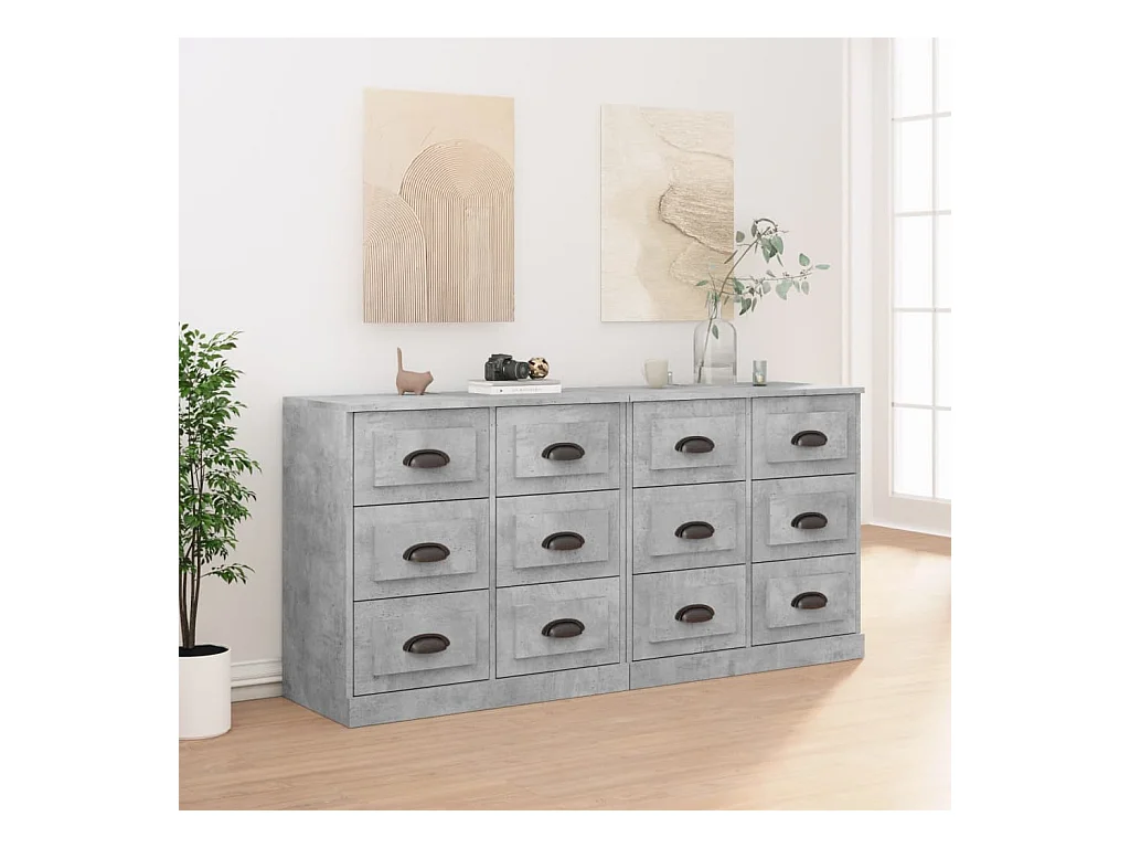 Buffets 2 pièces gris béton bois d'ingénierie