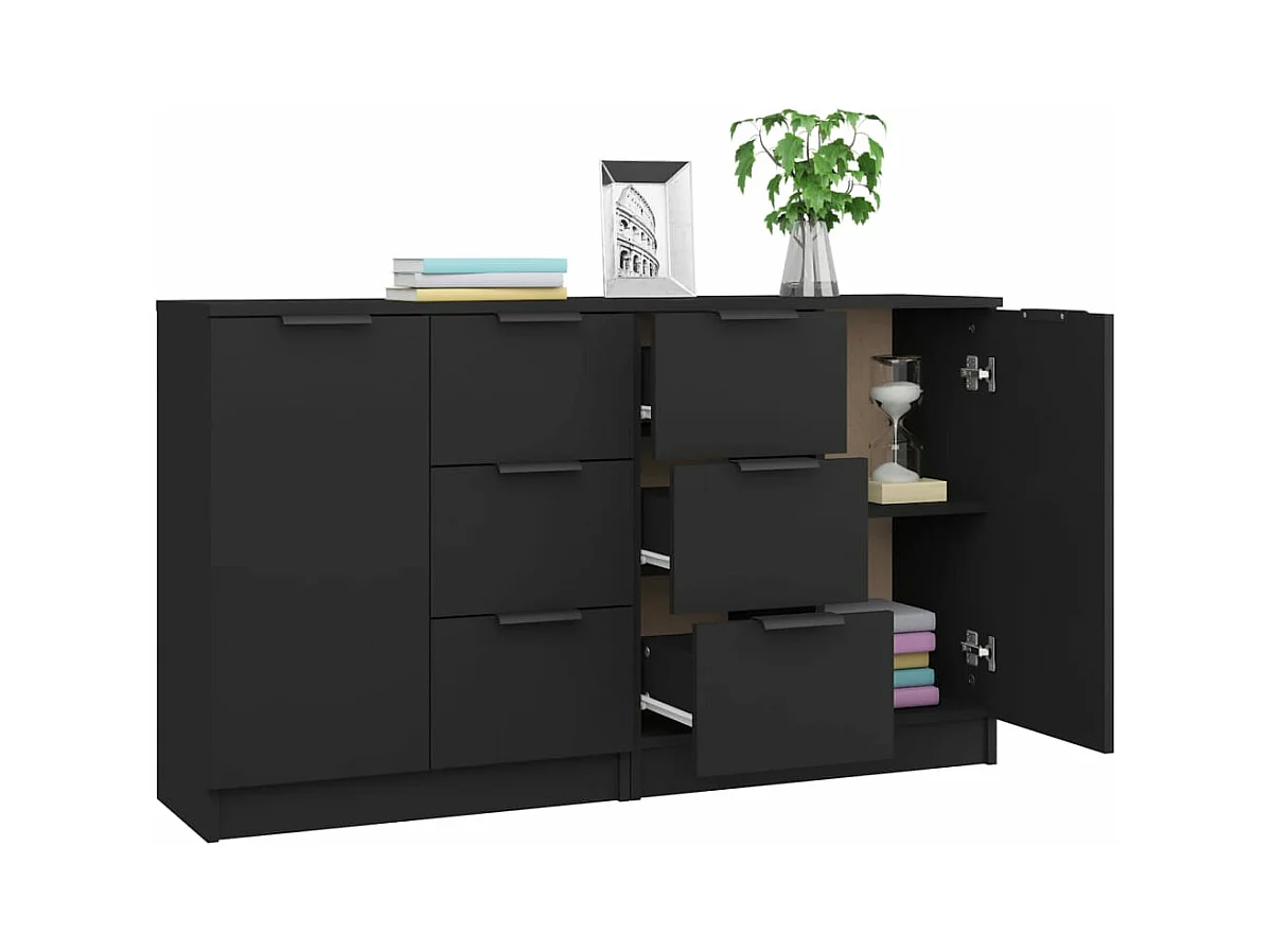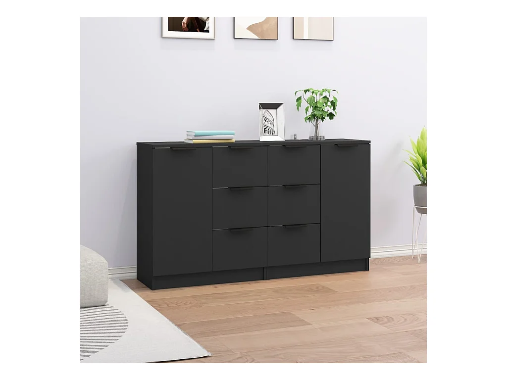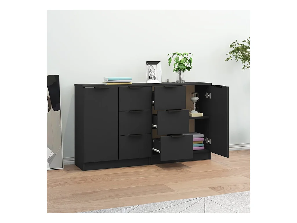 Buffets 3 pièces noir bois d'ingénierie