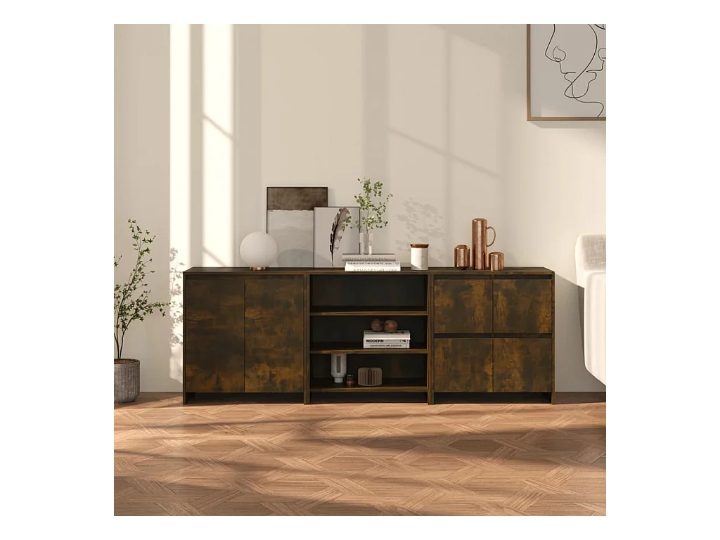 Buffets 3 pcs Chêne fumé Bois d'ingénierie