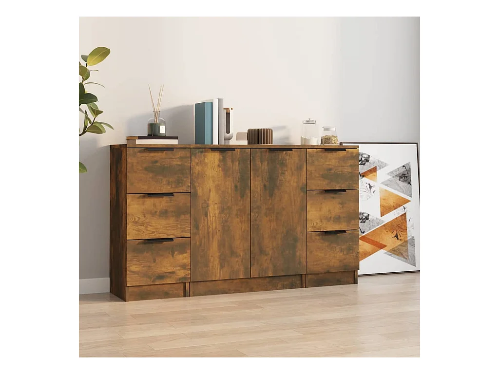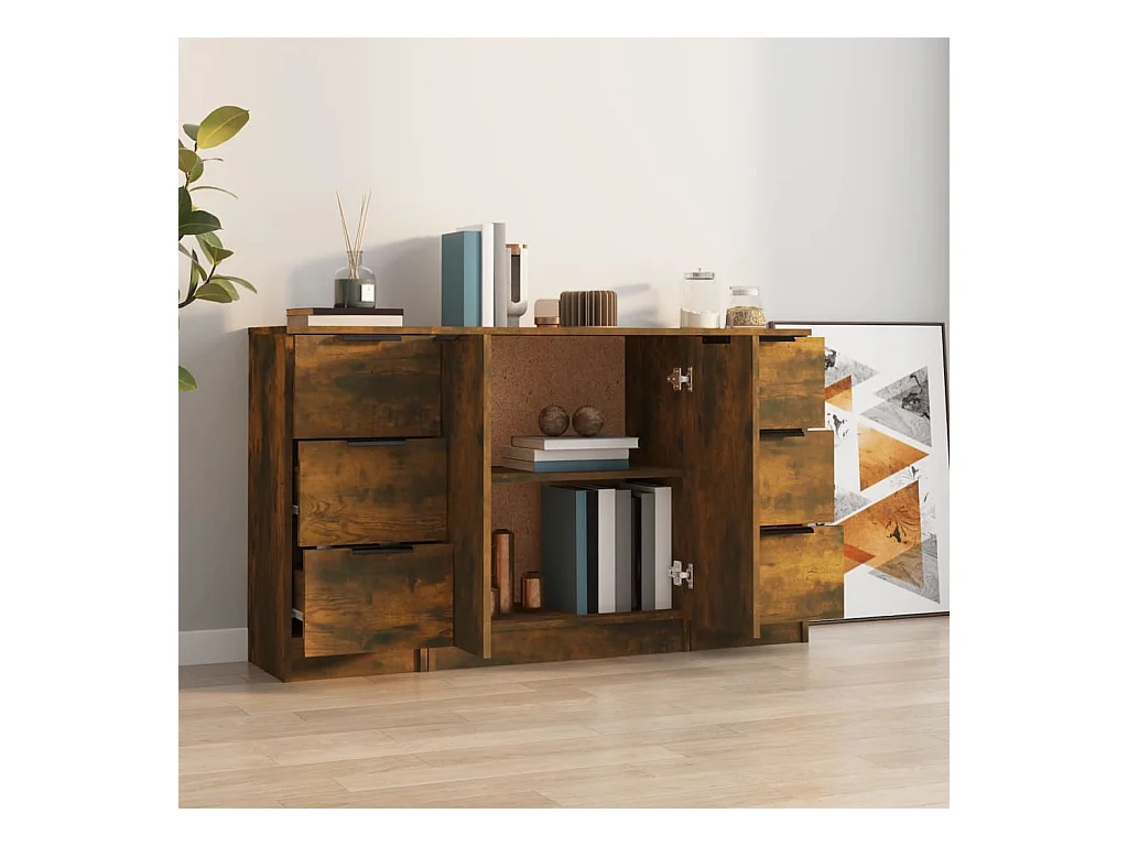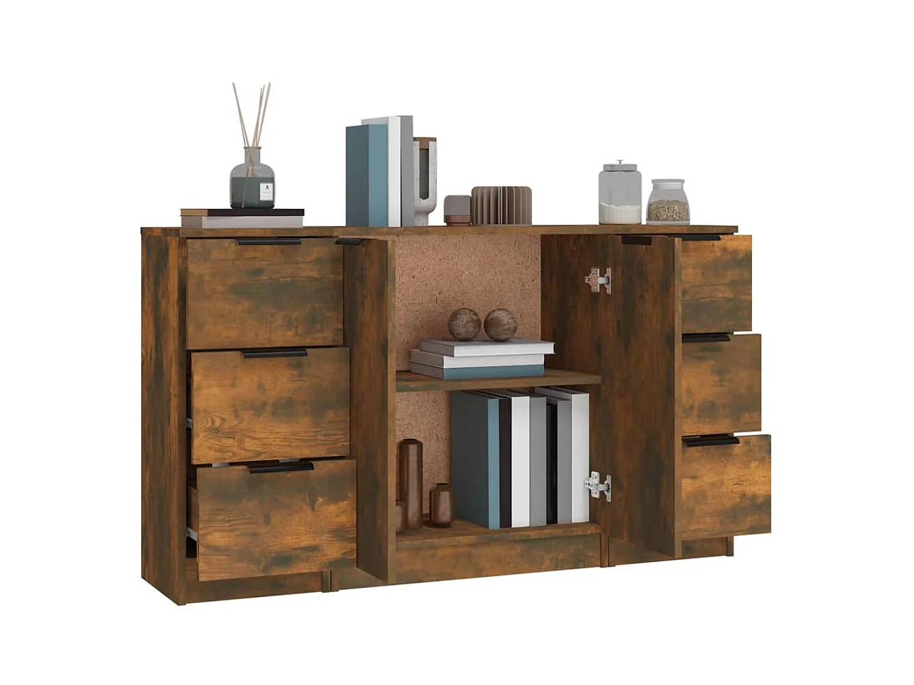 Buffets 3 pcs Chêne fumé Bois d'ingénierie EGER57377