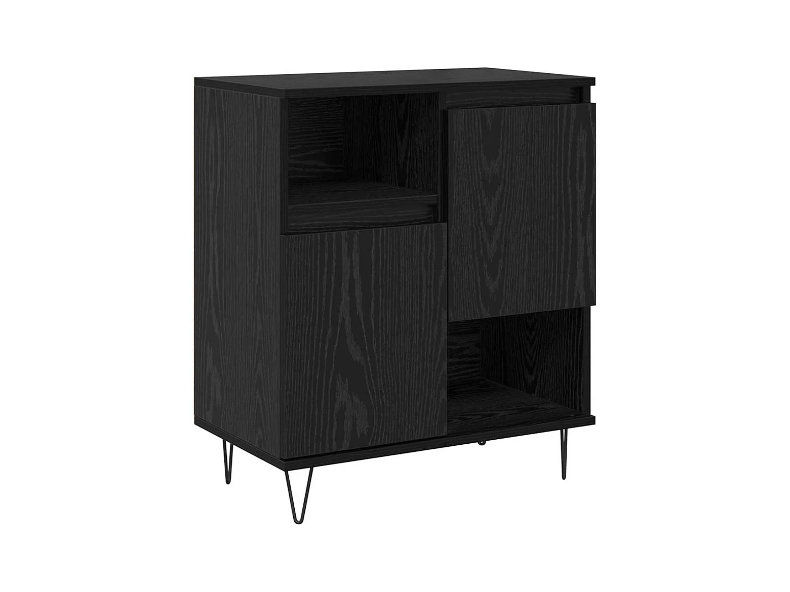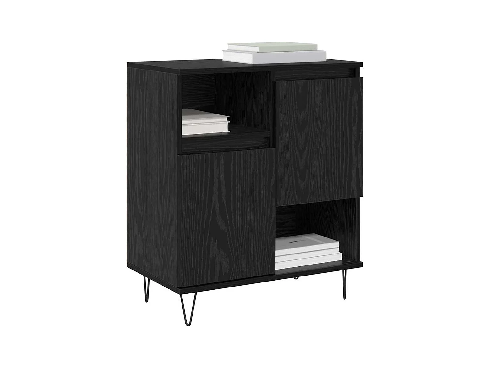 Buffet avec pieds en bois massif noir bois d'ingénierie