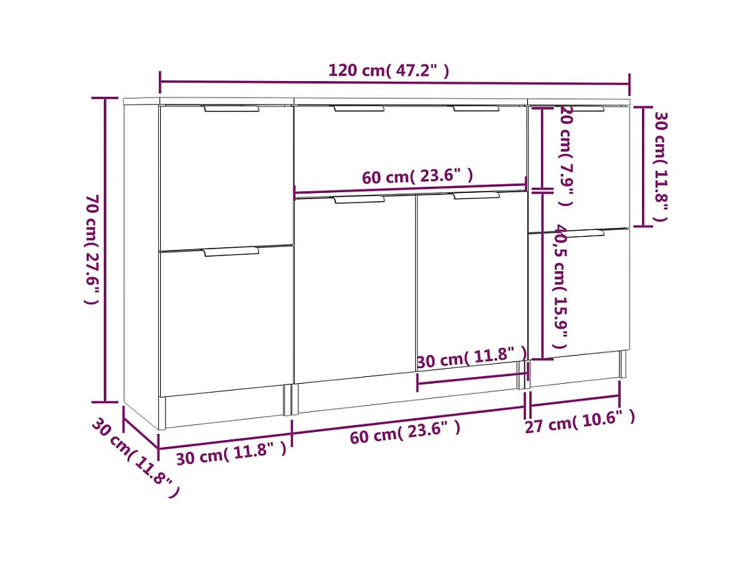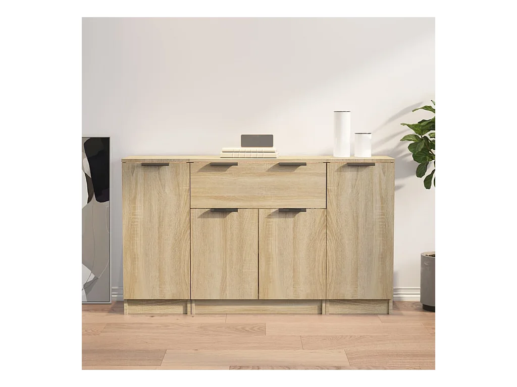 Buffets 3 pcs Chêne sonoma Bois d'ingénierie