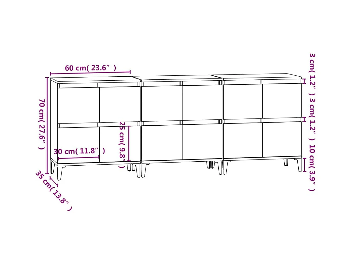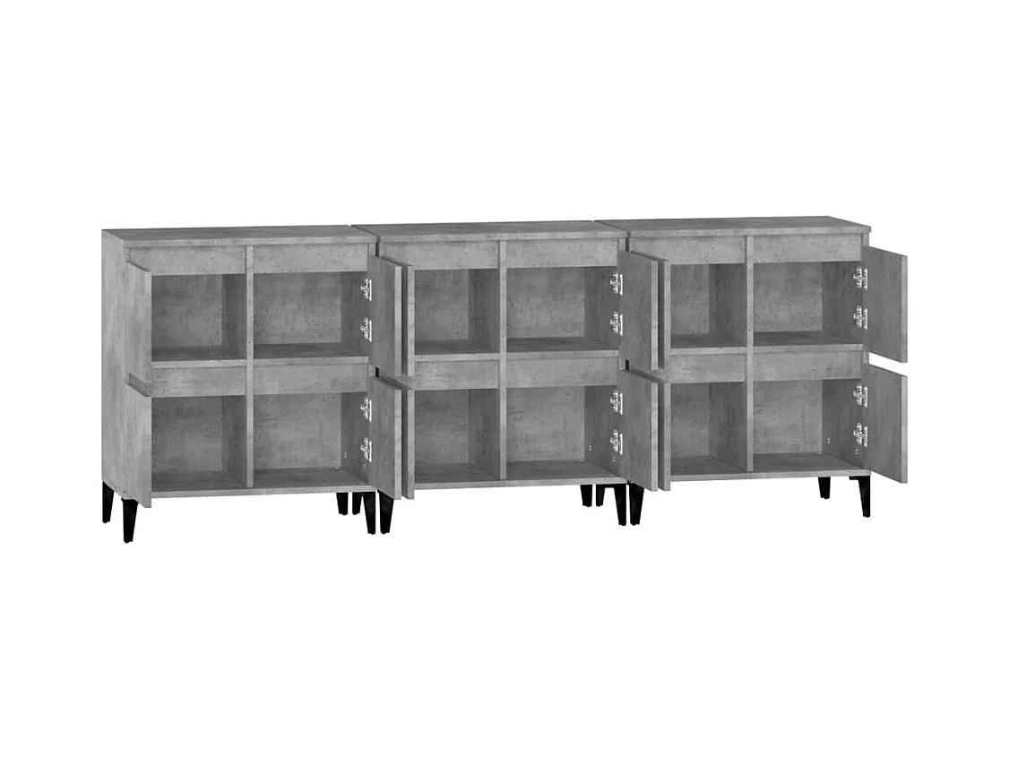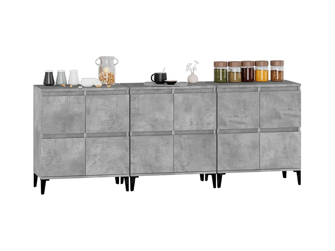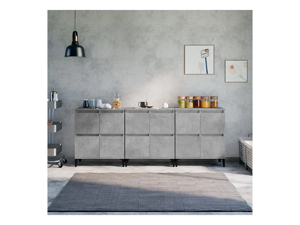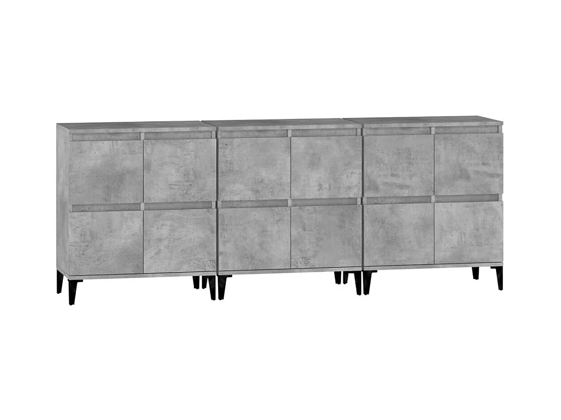 Buffets 3 pcs gris béton 60x35x70 cm bois d'ingénierie