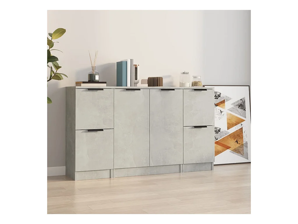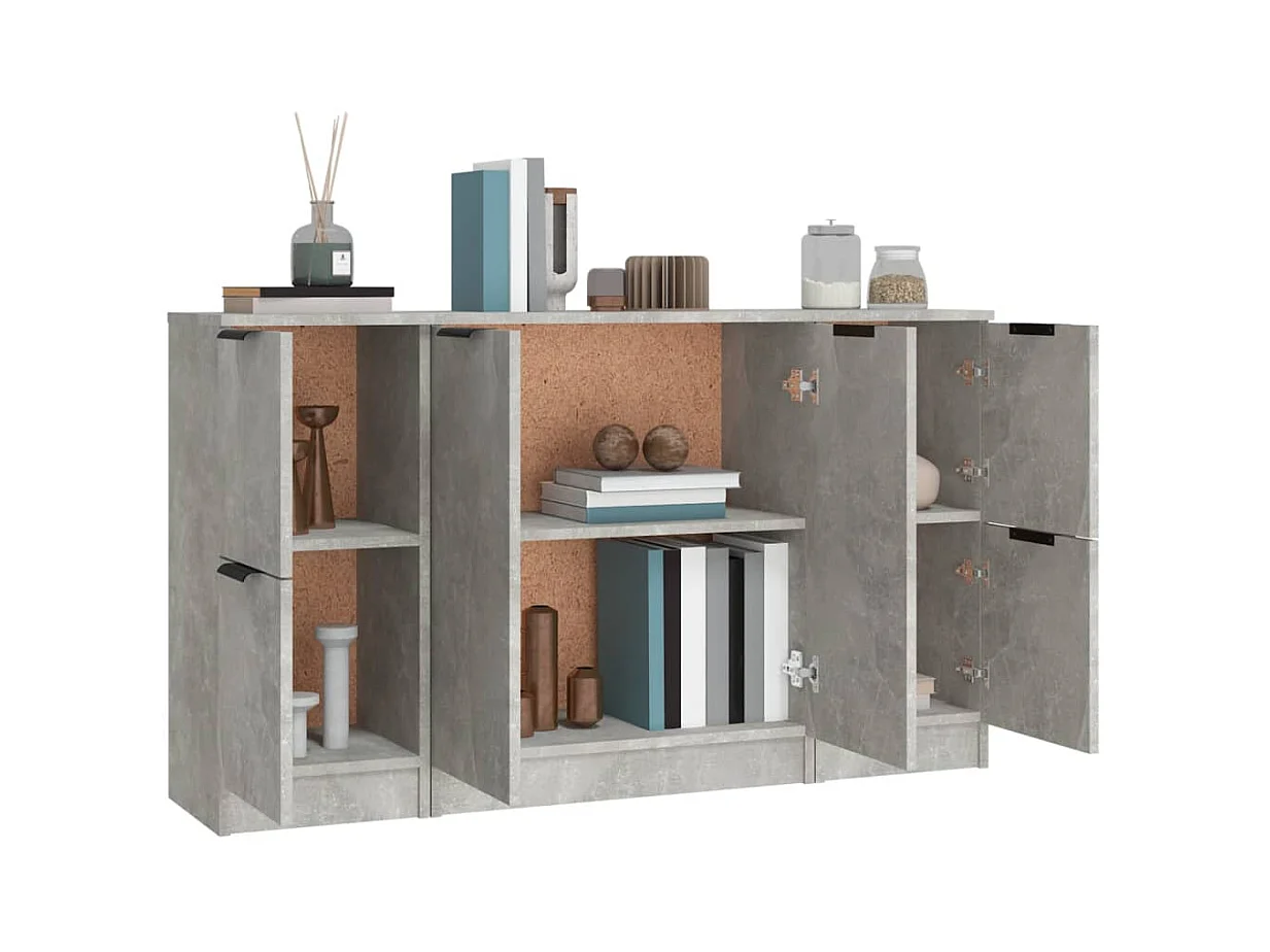 Buffets 3 pcs gris béton bois d'ingénierie EGER87648