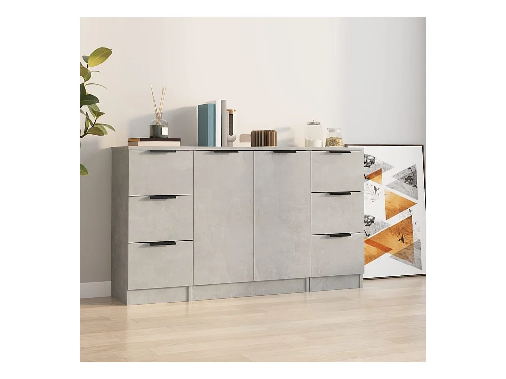 Buffets 3 pcs gris béton bois d'ingénierie EGER87648
