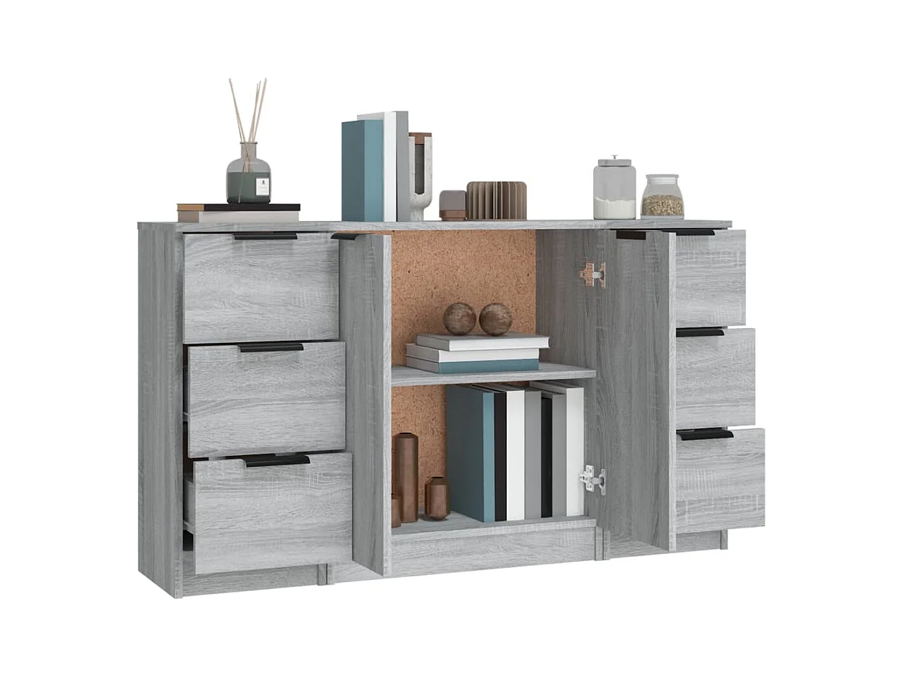 Buffets 3 pcs Sonoma gris Bois d'ingénierie