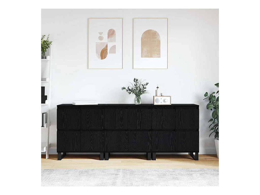 Buffets 3 pièces Chêne noir 180 x 35 x 70 cm Bois d'ingénierie