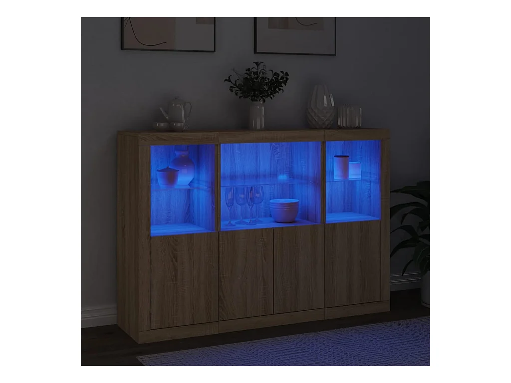 Buffets avec lumières LED 3 pcs chêne sonoma bois d'ingénierie