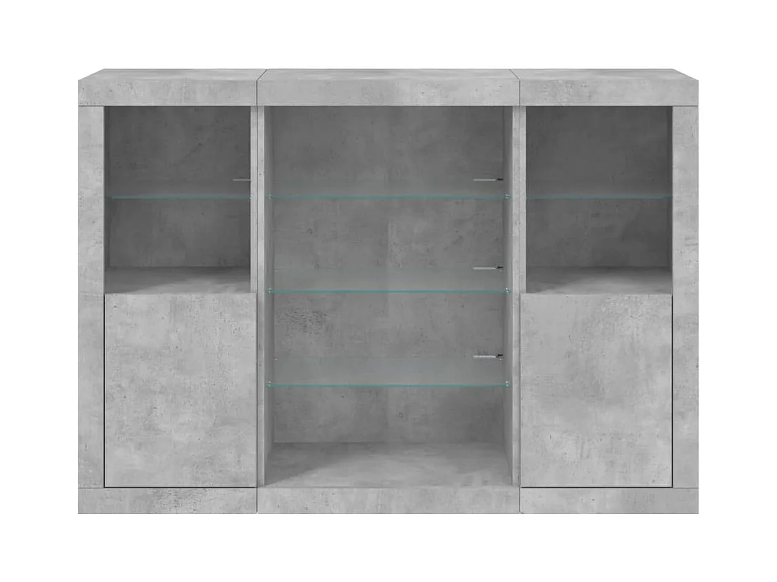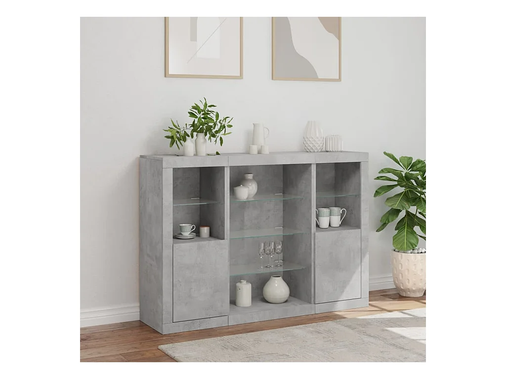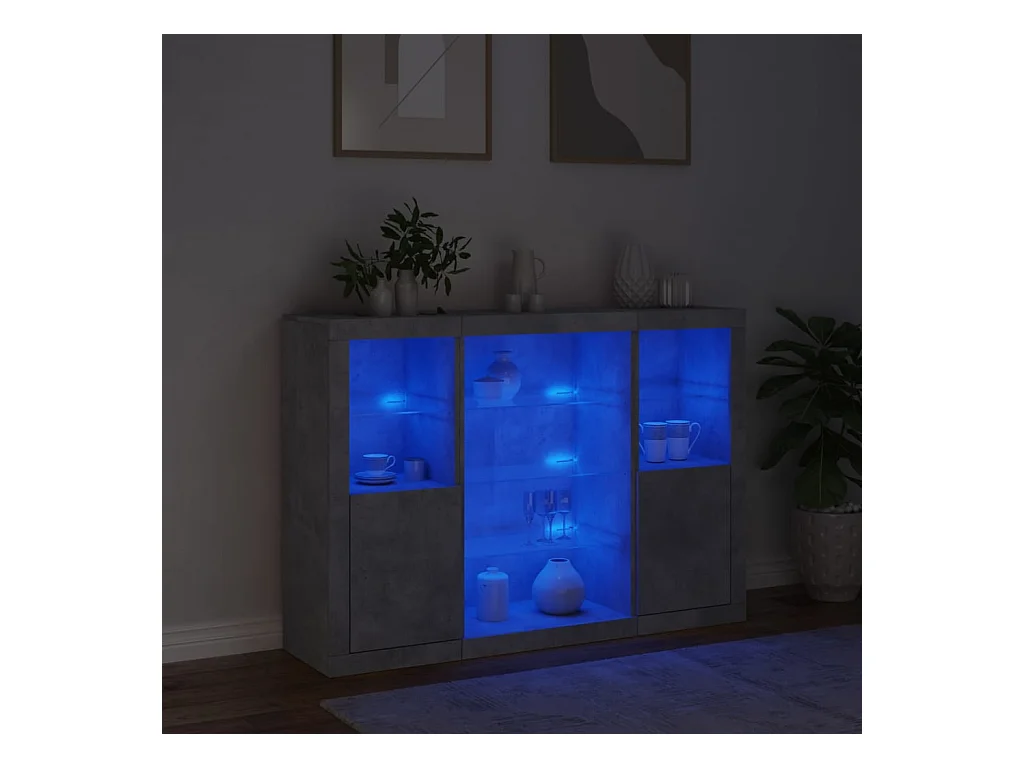 Buffets avec lumières LED 3 pcs gris béton bois d'ingénierie