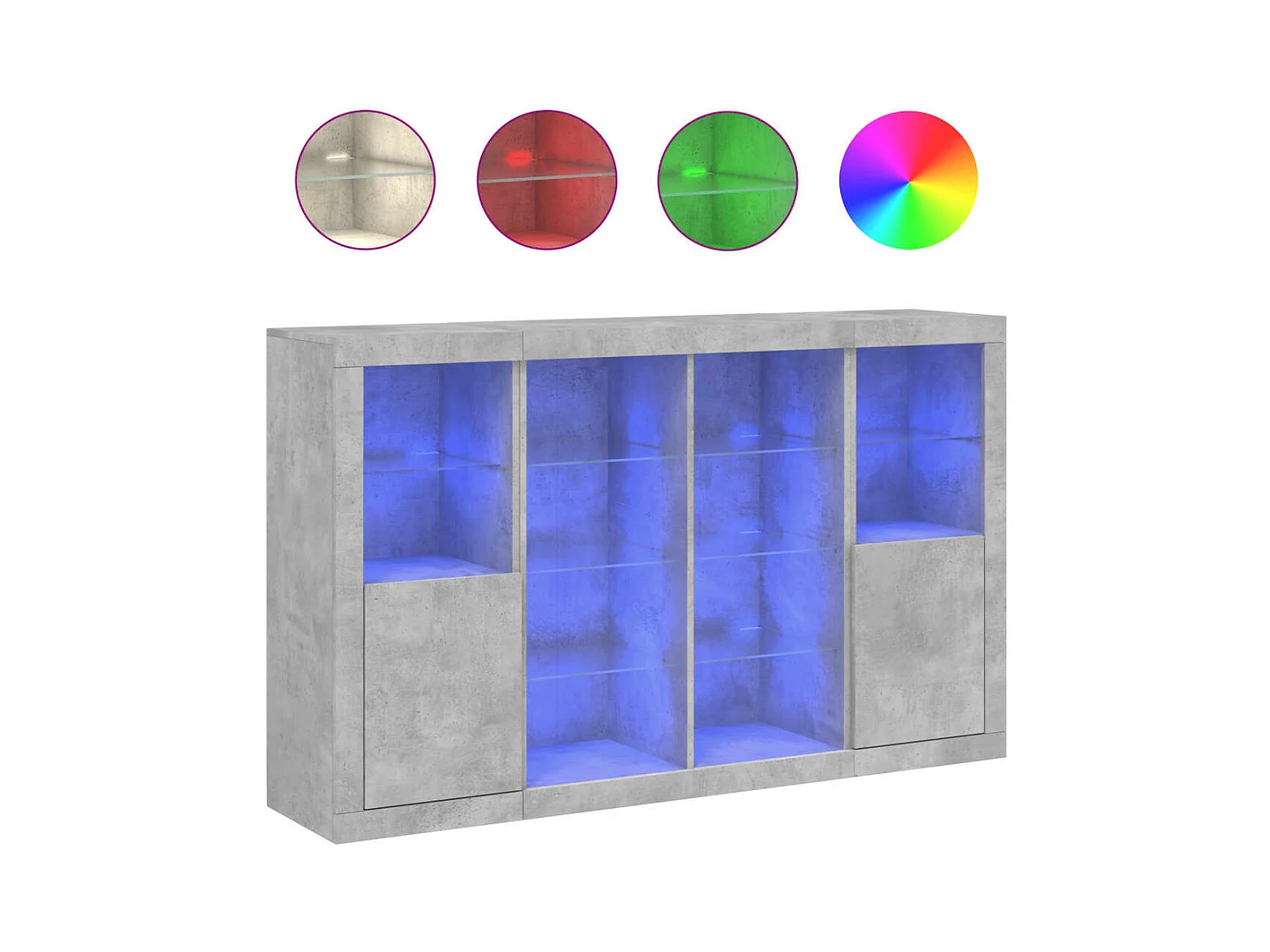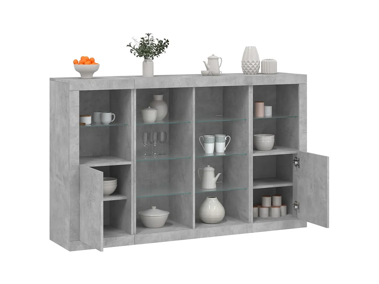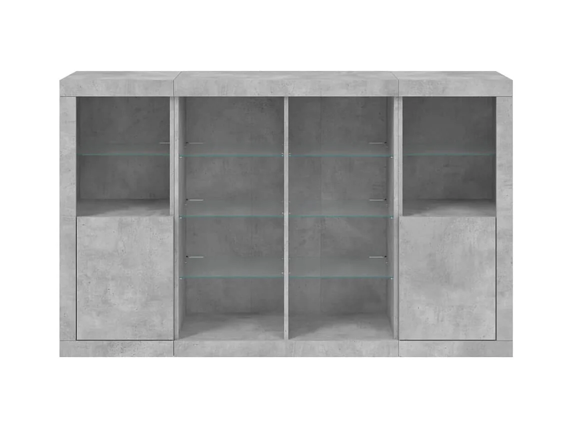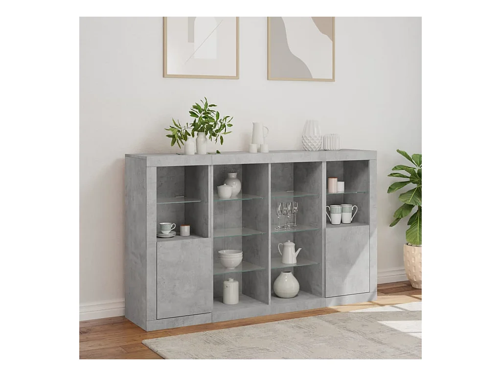 Buffets avec lumières LED 3 pcs gris béton bois d'ingénierie
