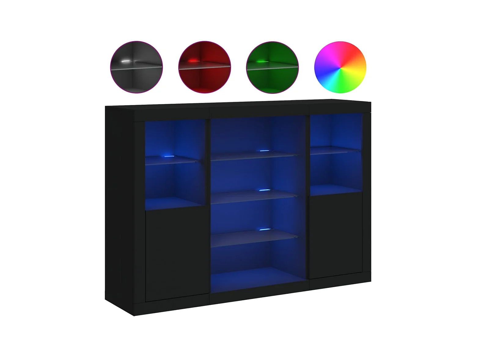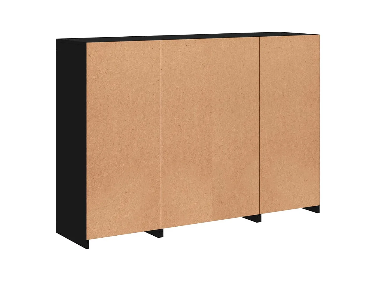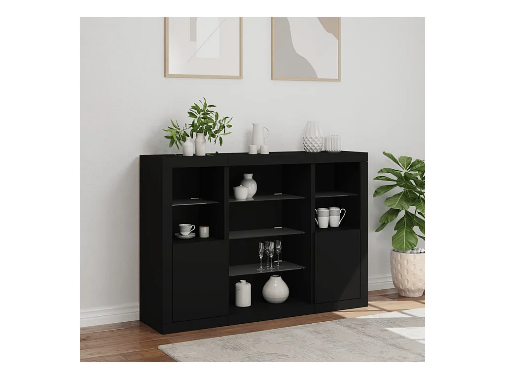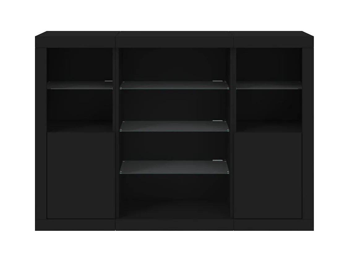 Buffets avec lumières LED 3 pcs noir bois d'ingénierie