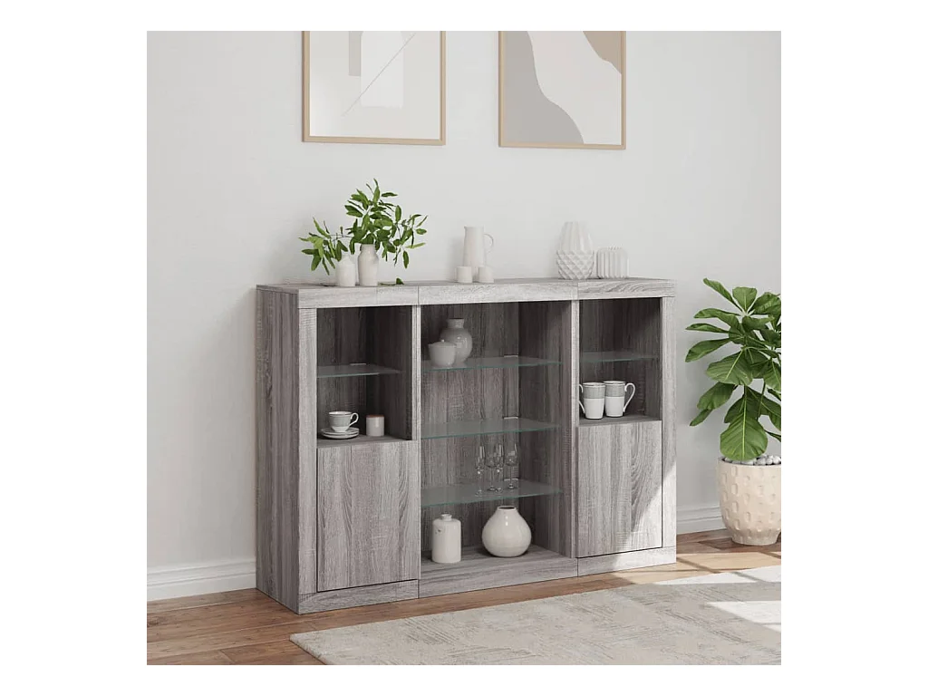 Buffets avec lumières LED 3 pcs sonoma gris bois d'ingénierie