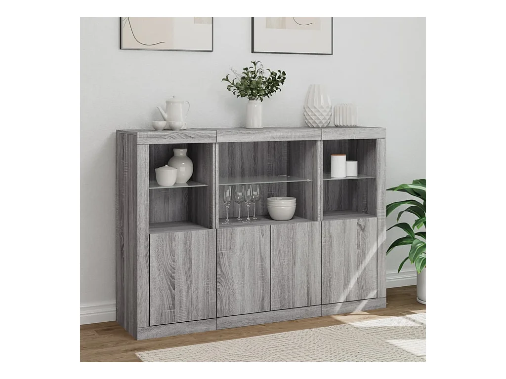Buffets avec lumières LED 3 pièces sonoma gris bois d'ingénierie