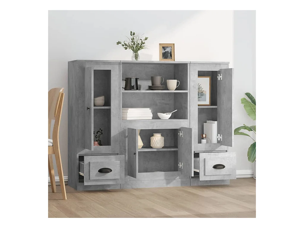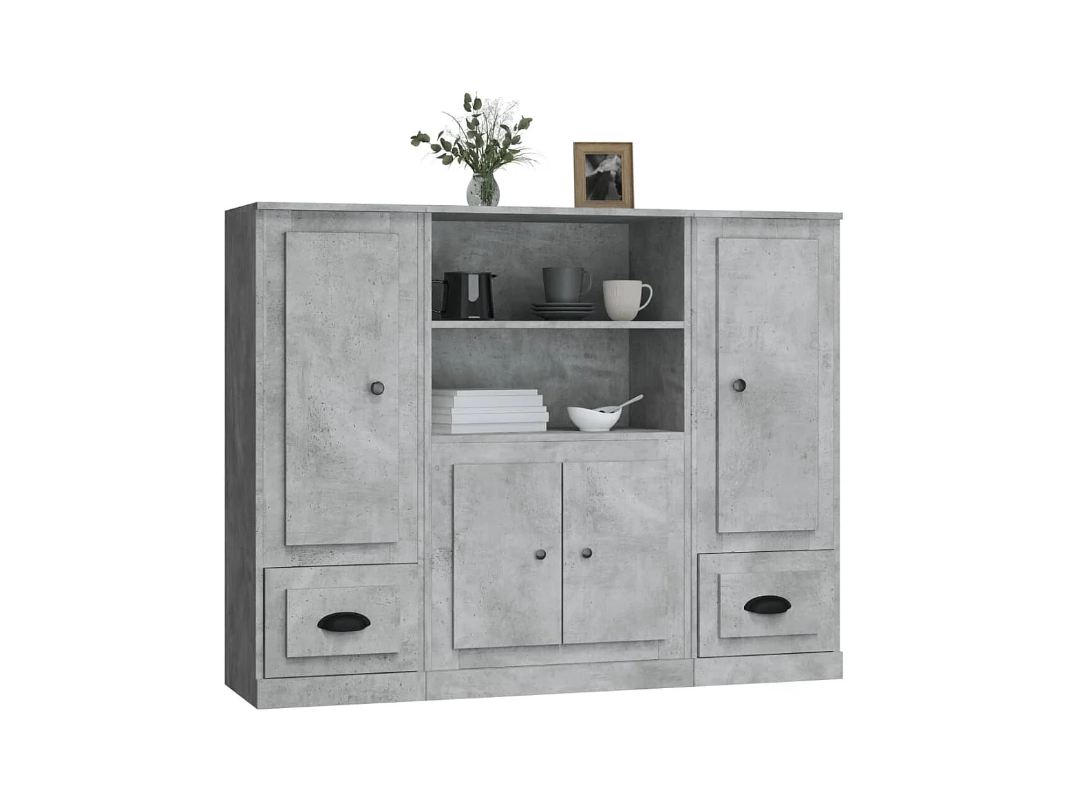 Buffets haut 3 pcs gris béton bois d'ingénierie FR78579