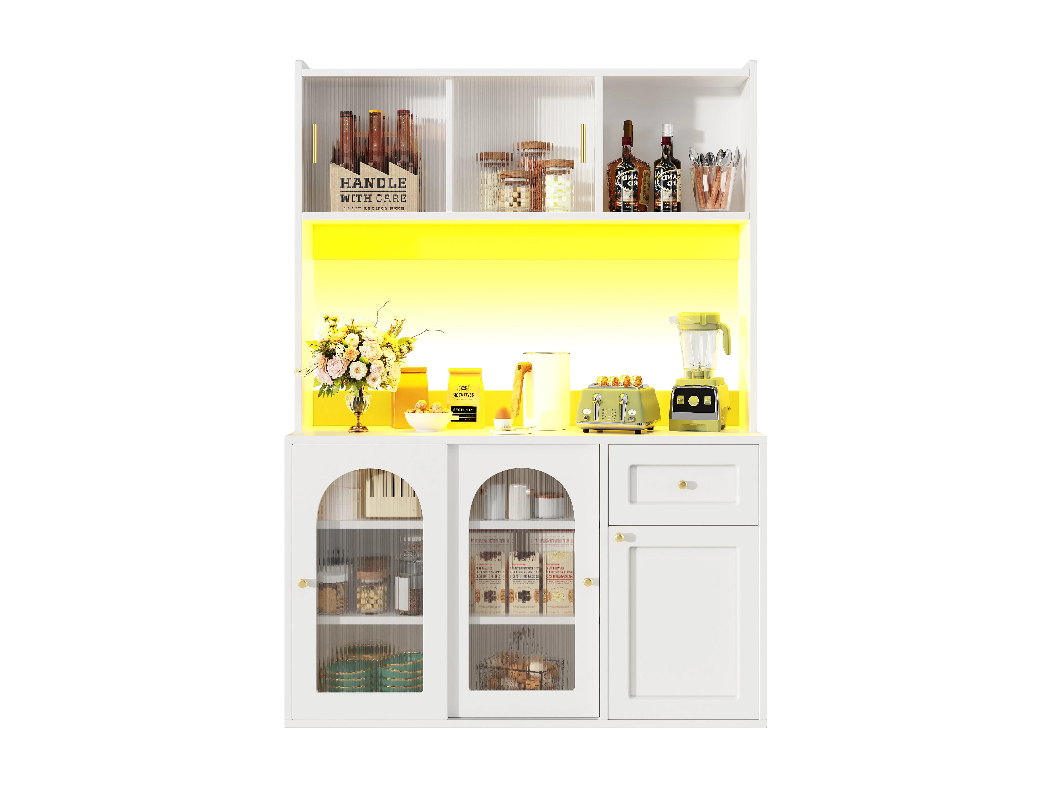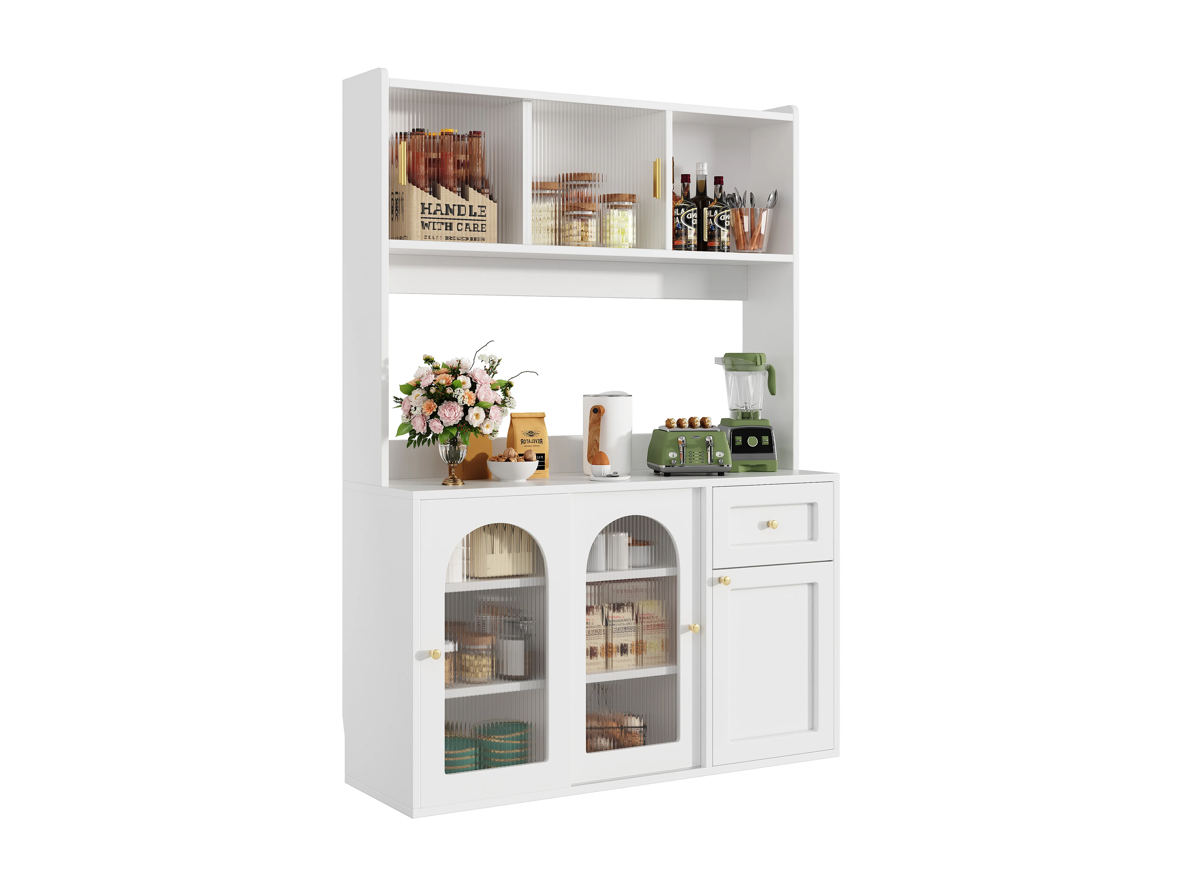 Buffet avec portes sculptées en forme de goutte, design moderne, MDF, blanc (120x37.5x80.8 cm)