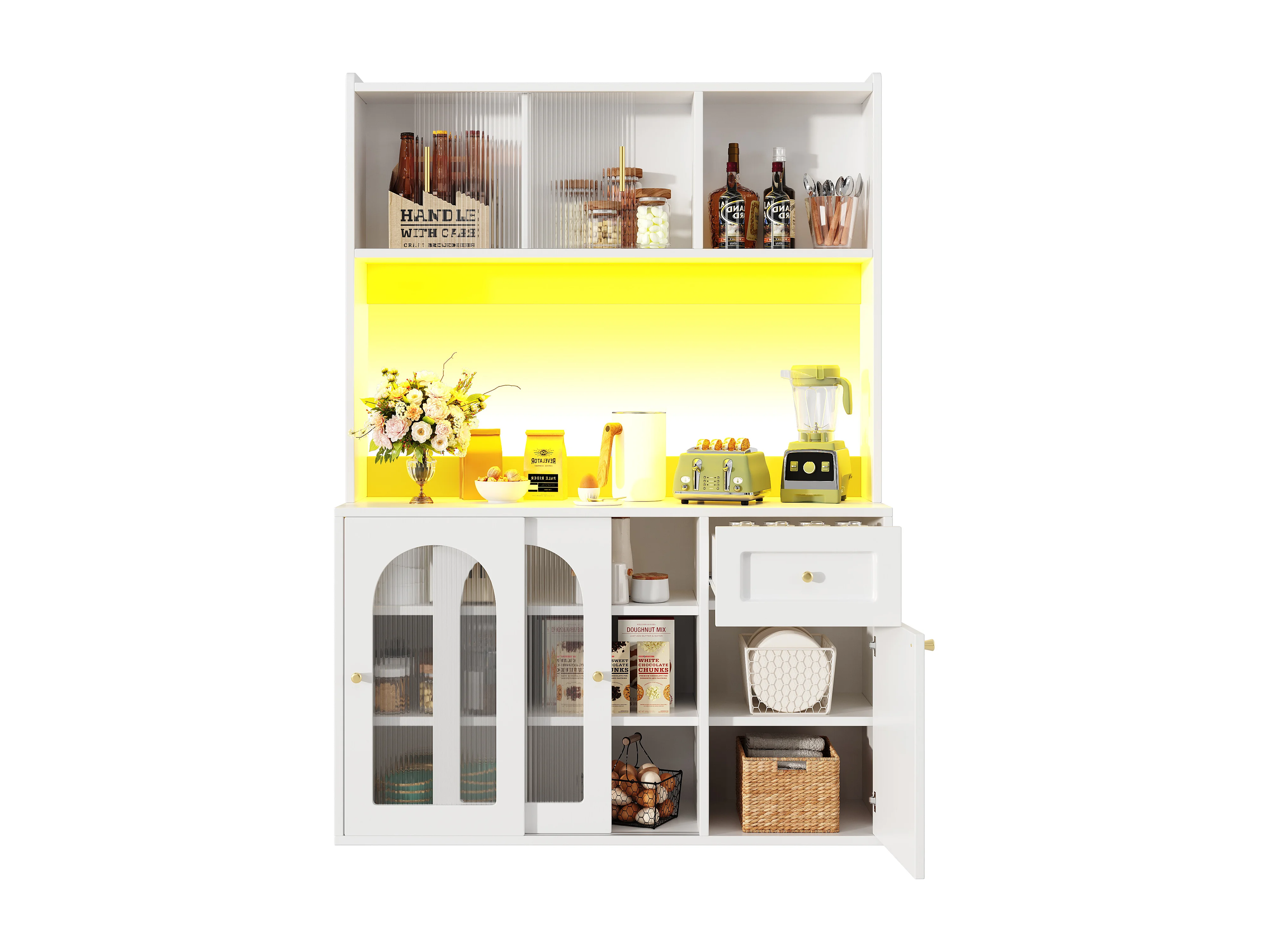 Buffetschrank avec LED, 3 tiroirs, étagères réglables, MDF, blanc (120x35x167 cm)