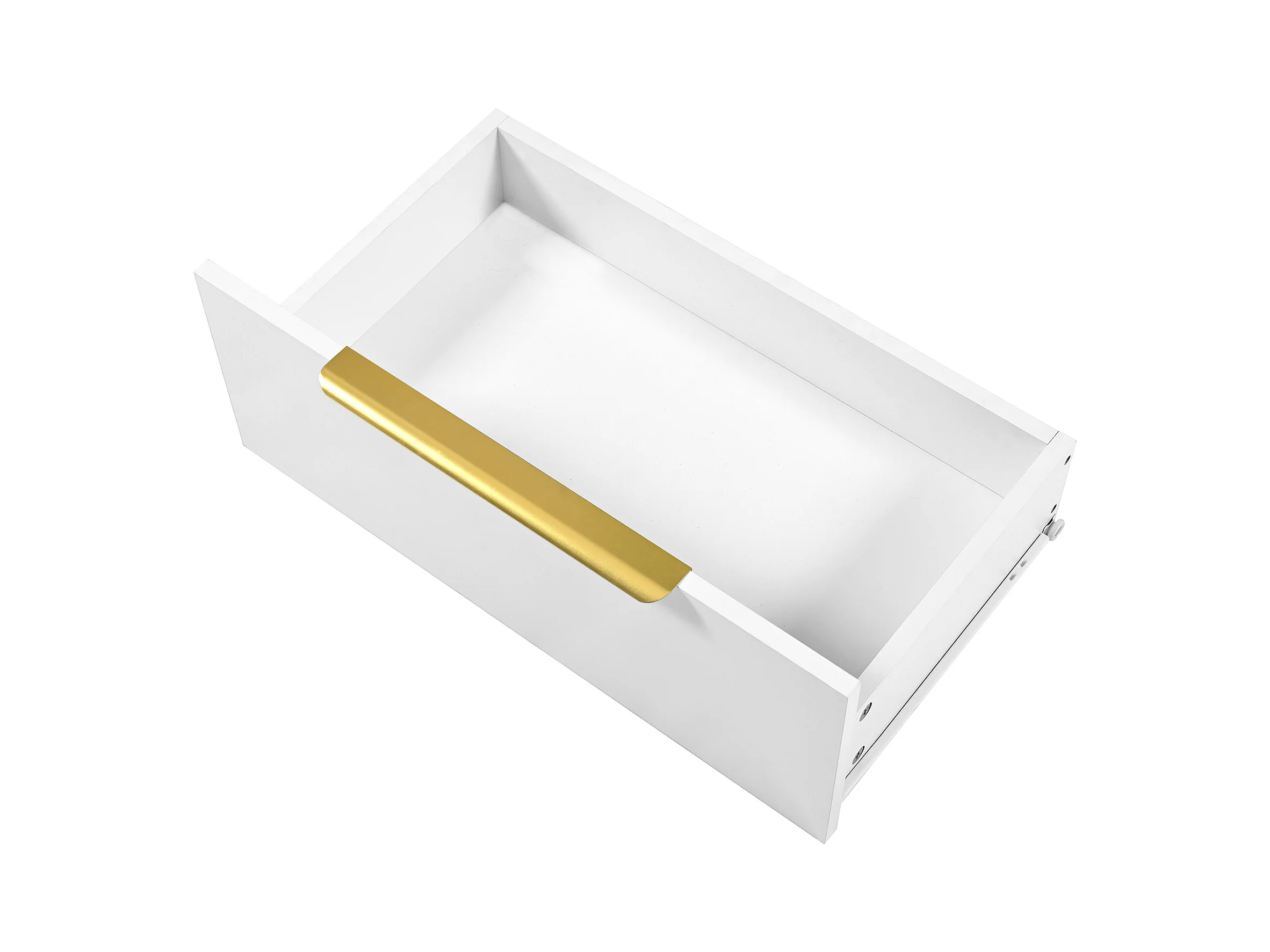 Buffet brillant - 140 x 35 x 72 cm - avec 3 tiroirs + 2 portes + Leds + étagères réglables - aggloméré - blanc
