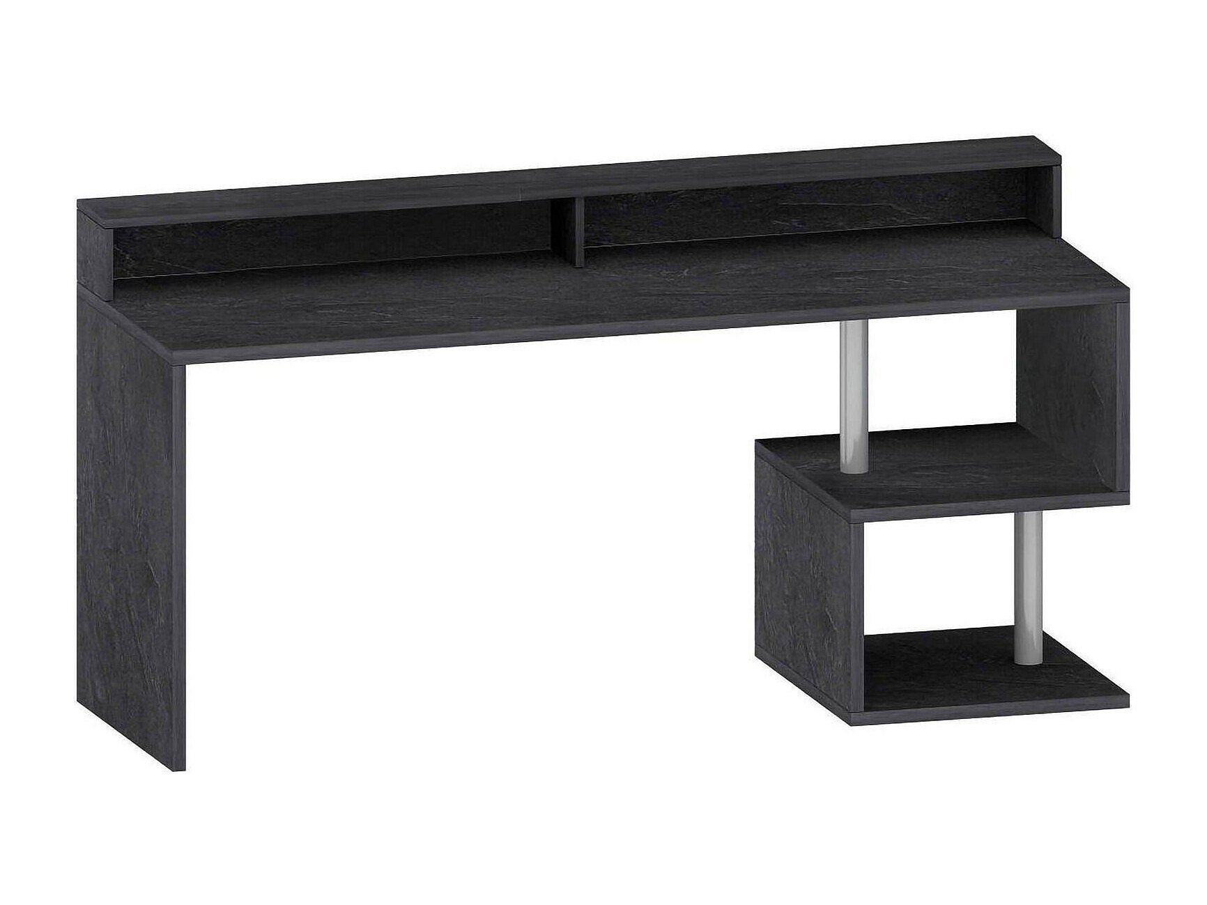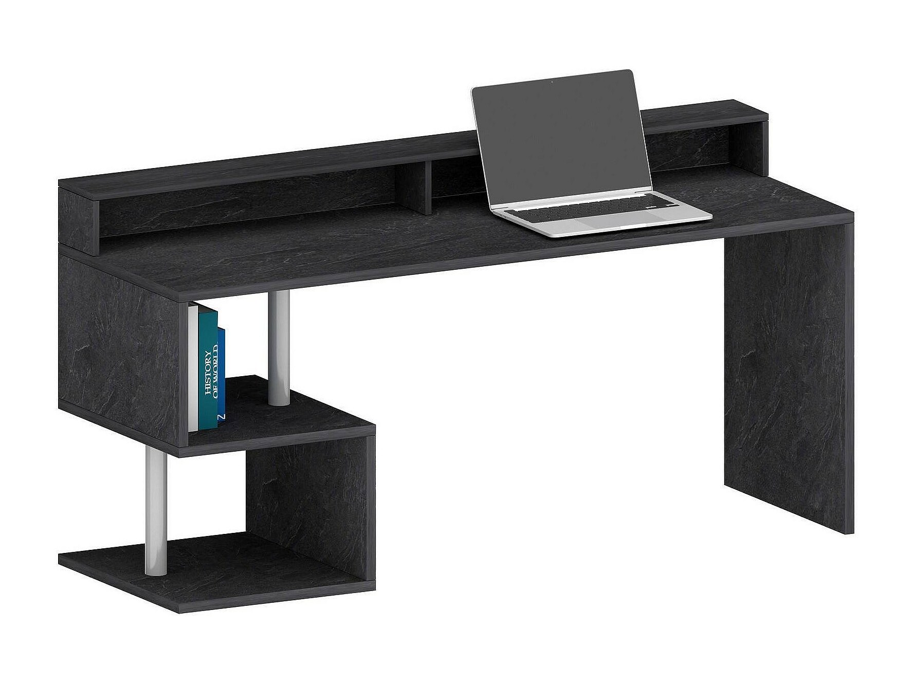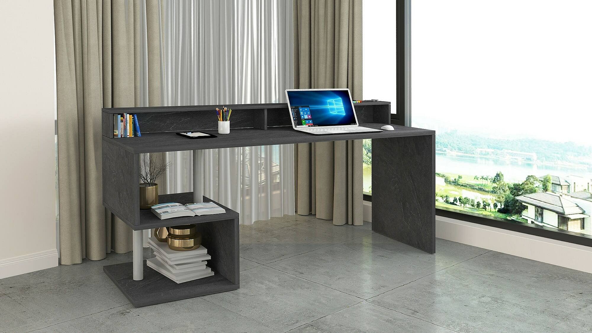 Bureau Silvestro, Bureau linéaire avec étagères de rangement, Bureau polyvalent avec plateau, 140x60h93 cm, Ardoise