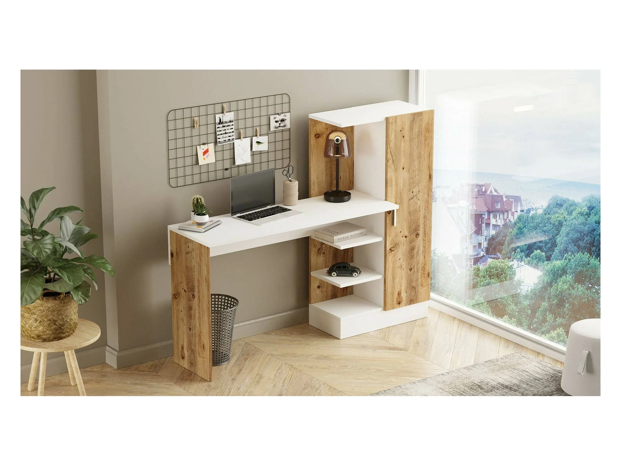 Bureau Ancha, Pupitre polyvalent, Table de bureau pour PC, Plan de travail, 152x40h120 cm, Chêne et Blanc