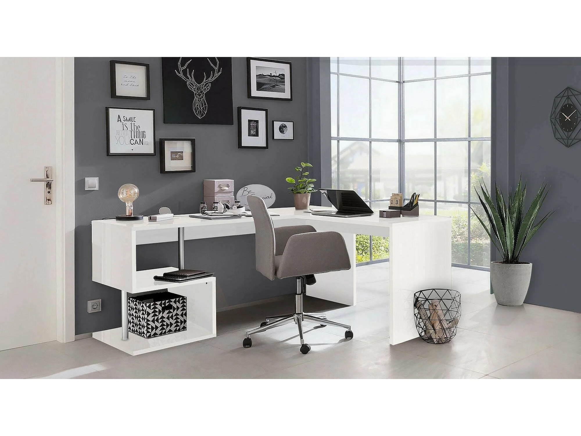 Bureau Antonino, Bureau PC linéaire, Table de bureau polyvalente, Bureau peu encombrant, 100% Made in Italy, 160x60h78 cm, Blanc brillant