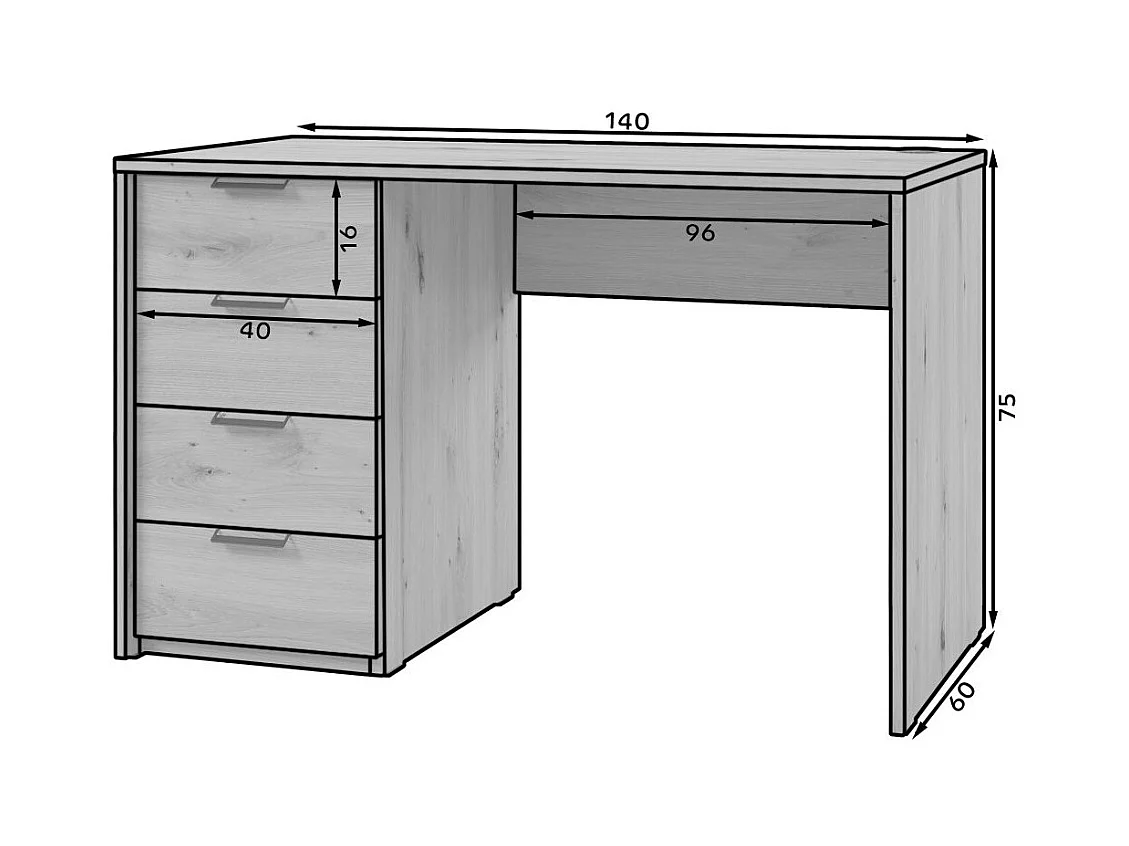 Bureau AROLD – 120 ou 140cm – Blanc mat ou bois Naturel-Blanc-Largeur 140 cm