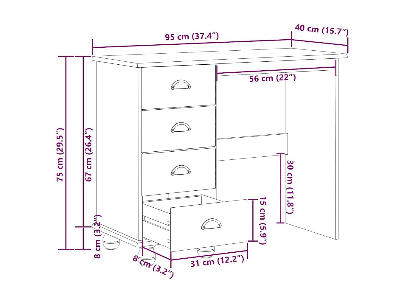 Bureau ASKIM Marron 95 x 40 x 75 cm Bois massif en pin