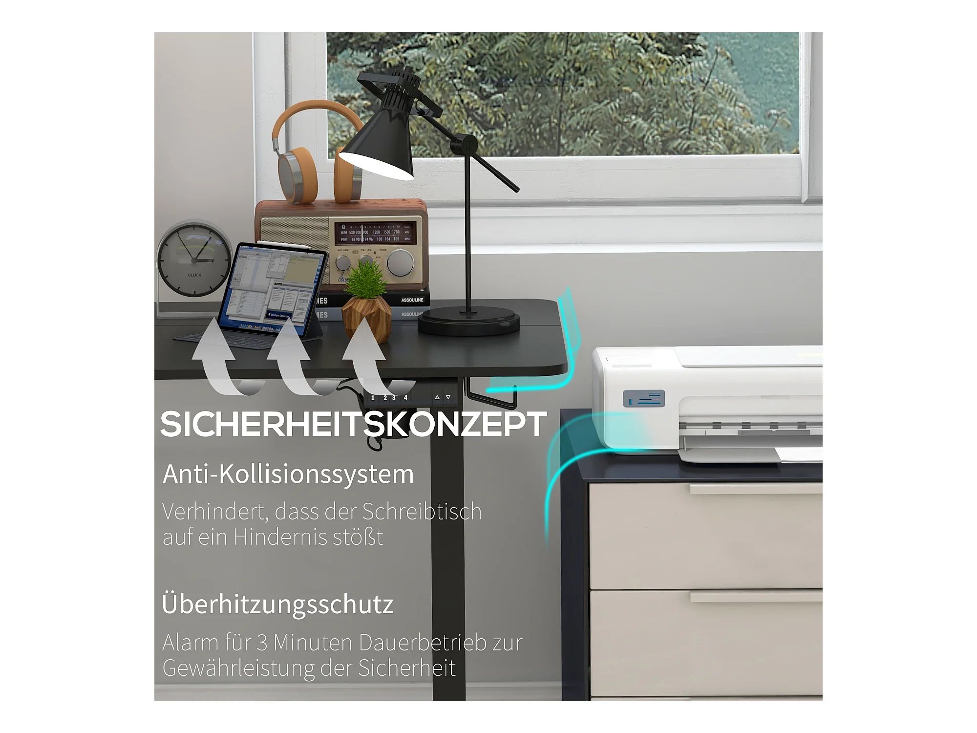 Bureau assis-debout électrique, anti-collision, contre la surchauffe, panneaux MDF, noir (140x70x72-116 cm)