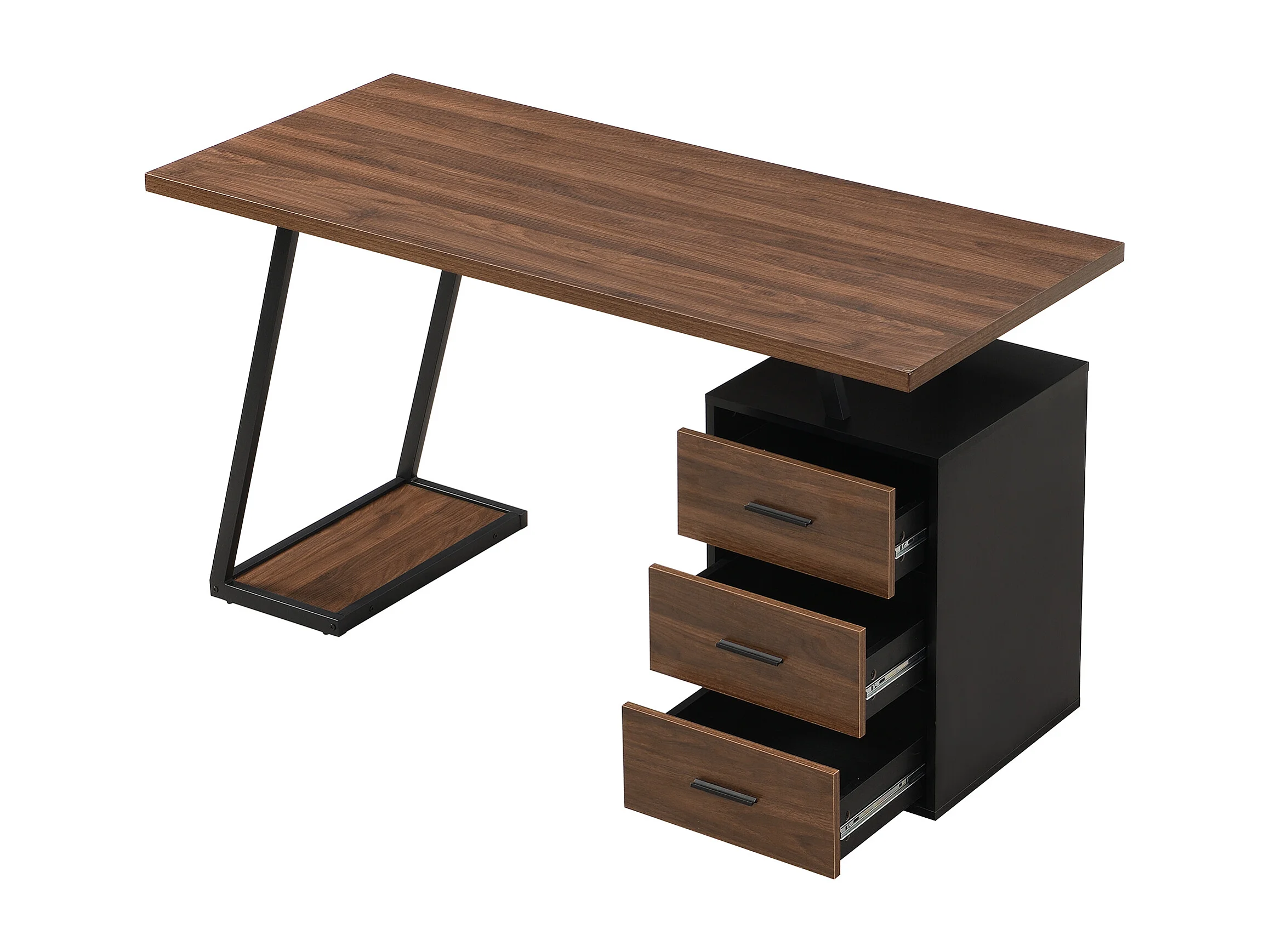 Bureau avec 3 tiroirs - 140 x 59.5 x 75 cm - style industriel - bois MDF - marron + noir
