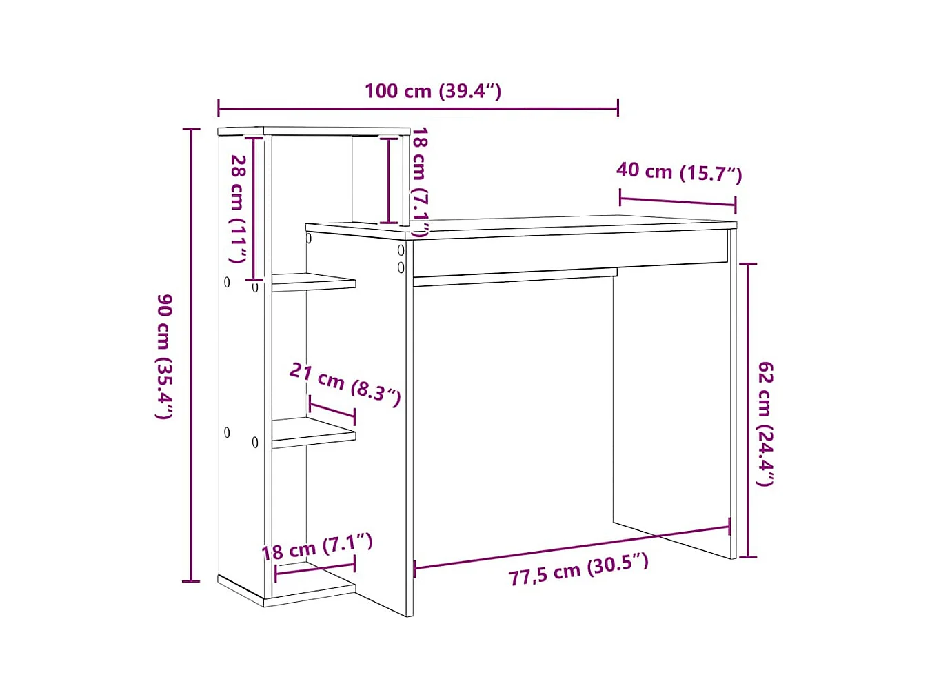 Bureau avec étagère Blanc 100 x 40 x 90 cm Bois d'ingénierie