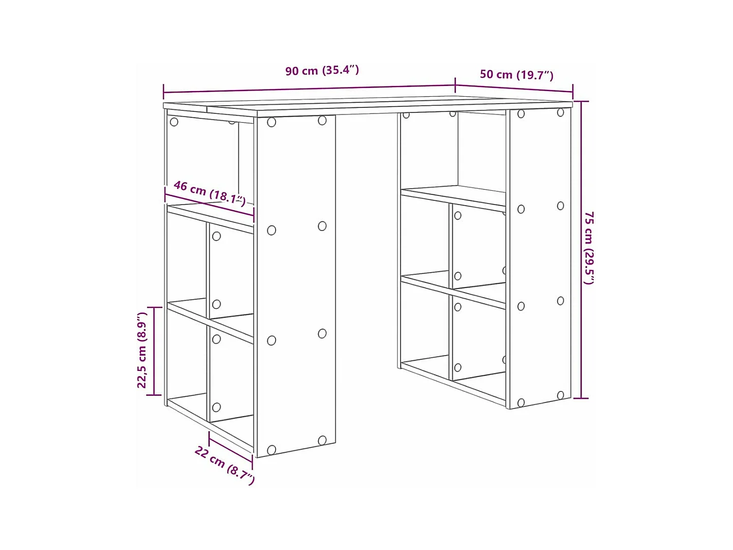 Bureau avec étagère Gris 90 x 50 x 75 cm Bois d'ingénierie