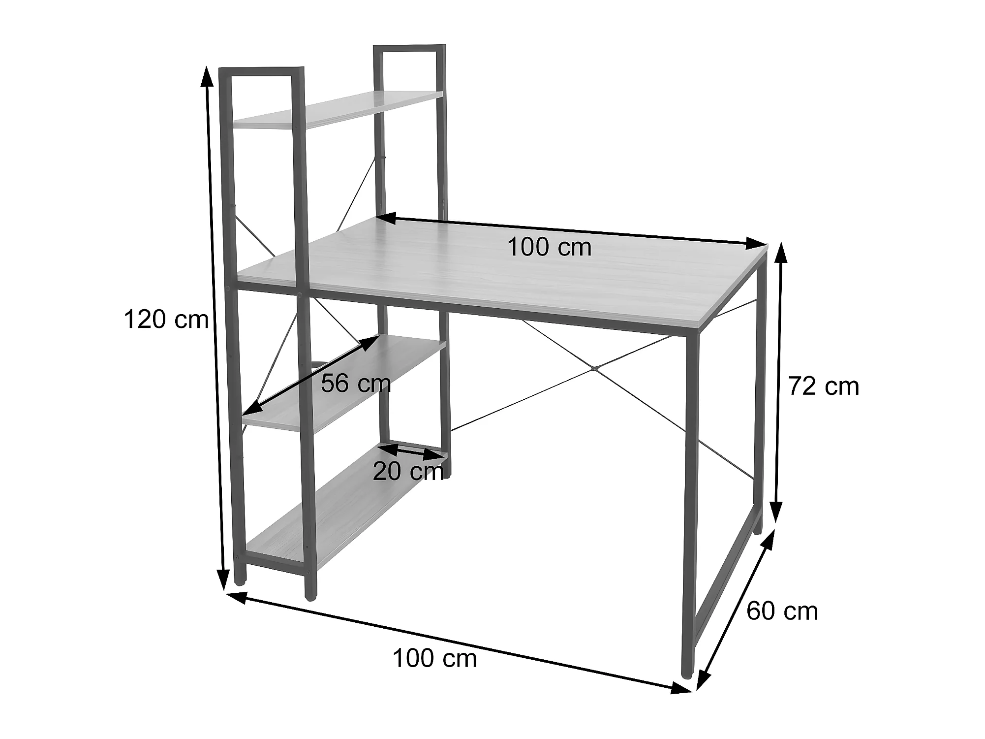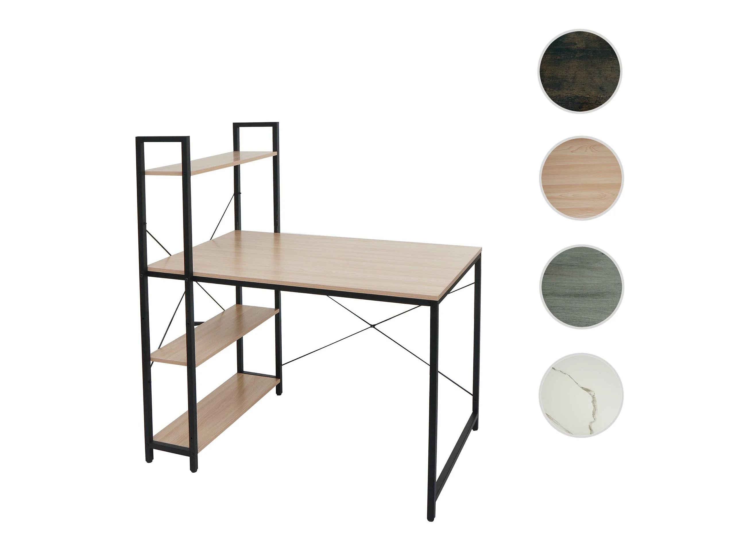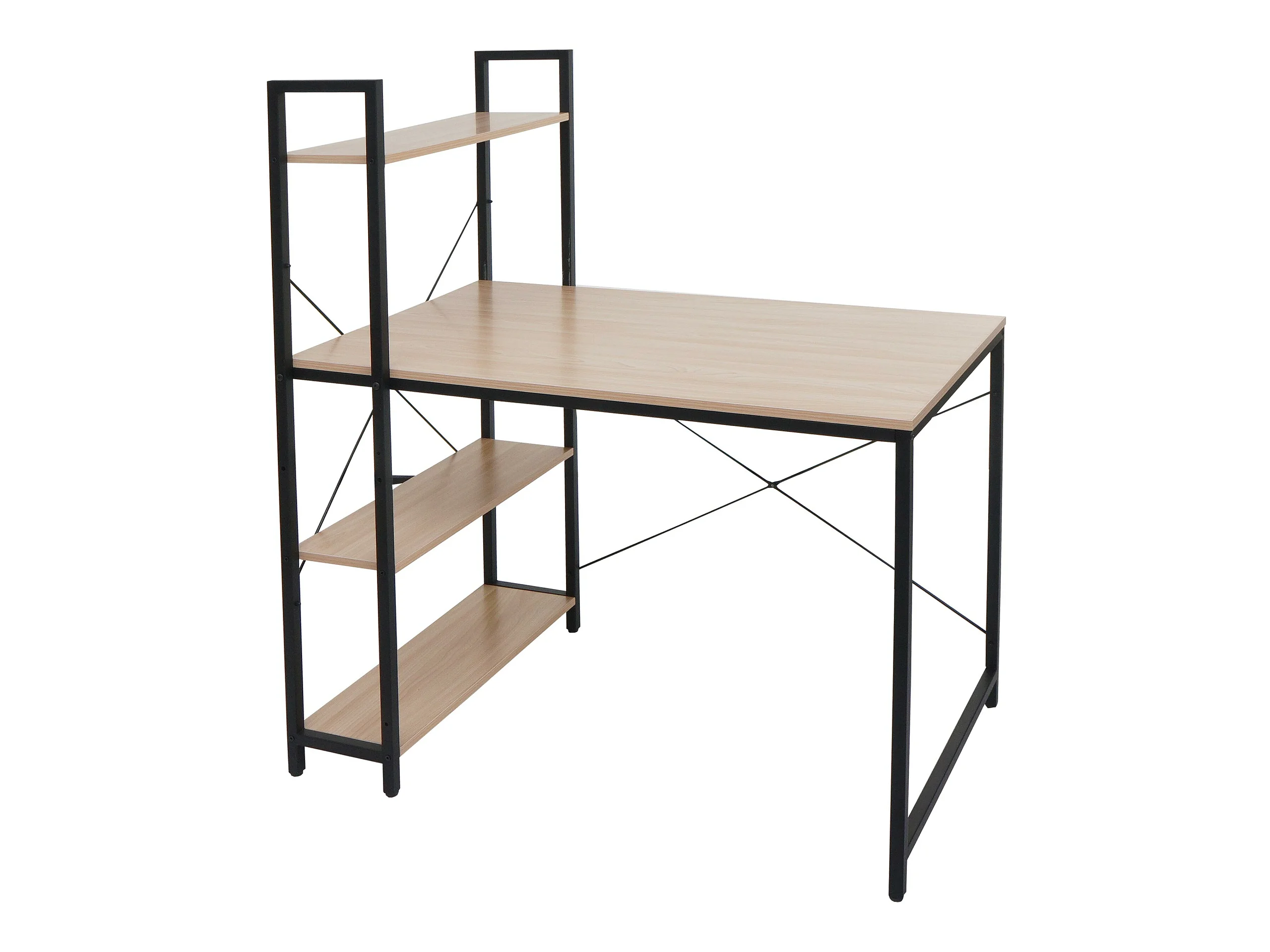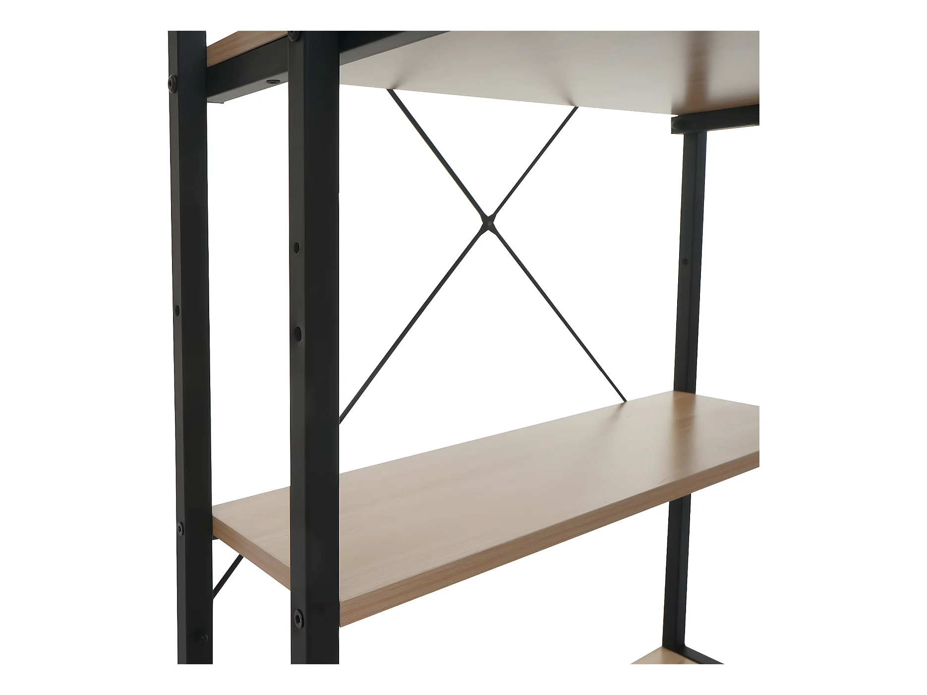 Bureau avec Bibliothèque, Bureau d’Ordinateur à Domicile avec Étagères de Rangement, Table de Travail Design Industriel, 57 x 120 x 139,5 cm (Naturel)