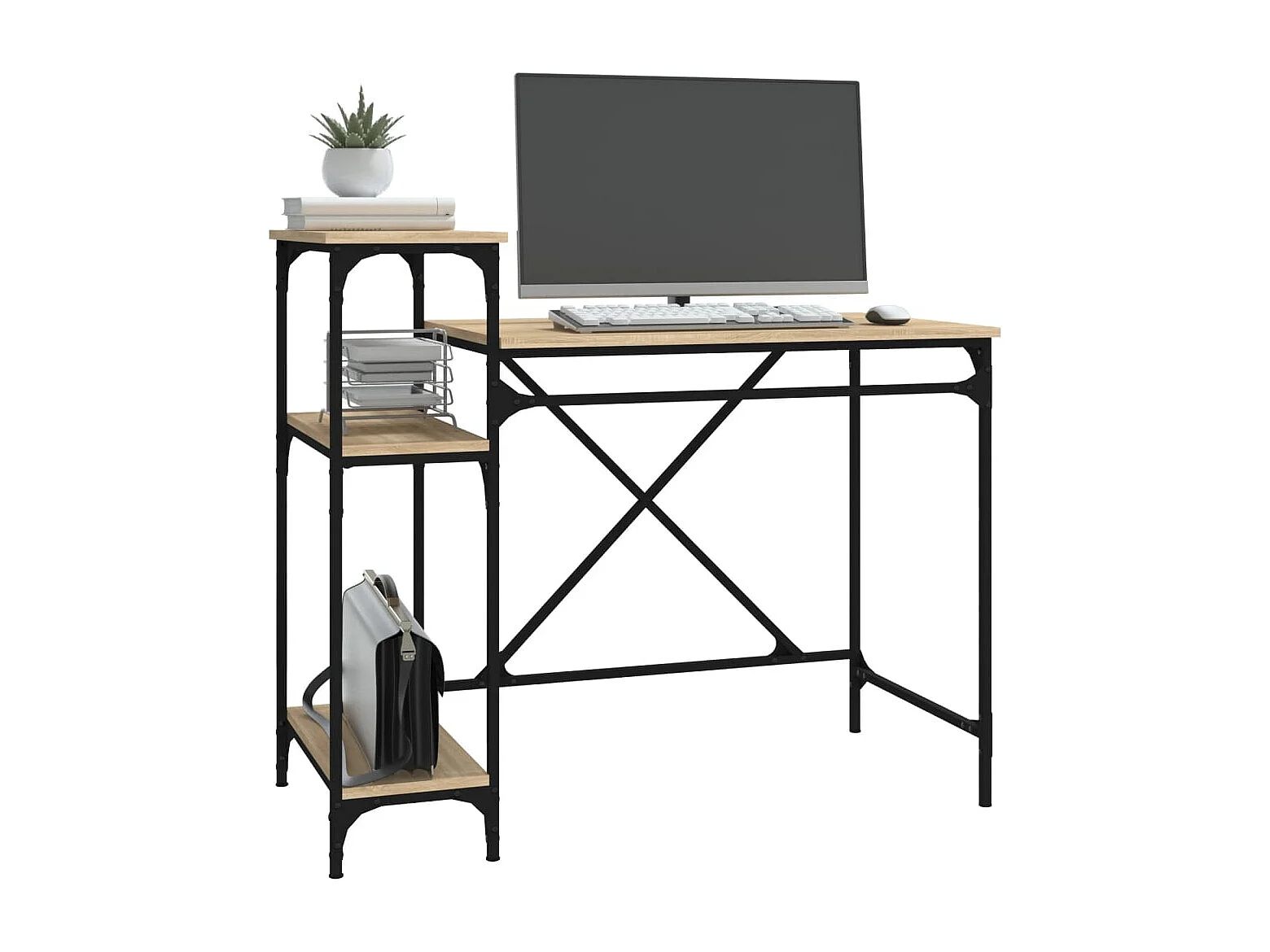 Bureau avec étagères chêne 105x50x90cm bois d'ingénierie et fer