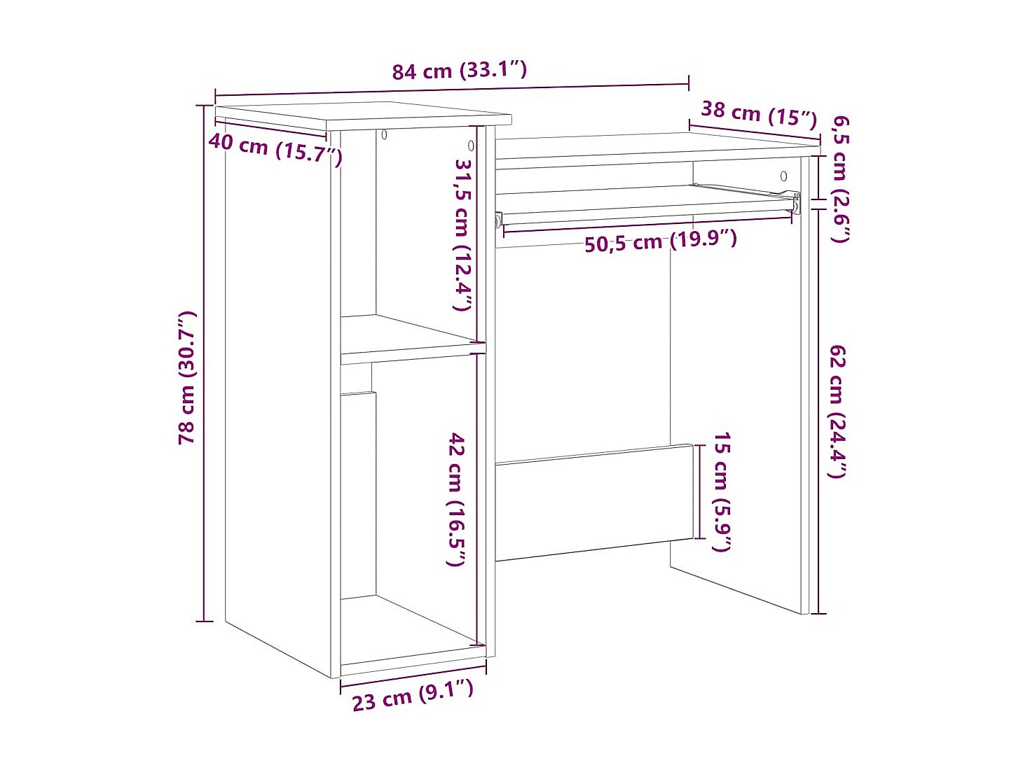 Bureau avec étagères chêne sonoma 84x40x78 cm