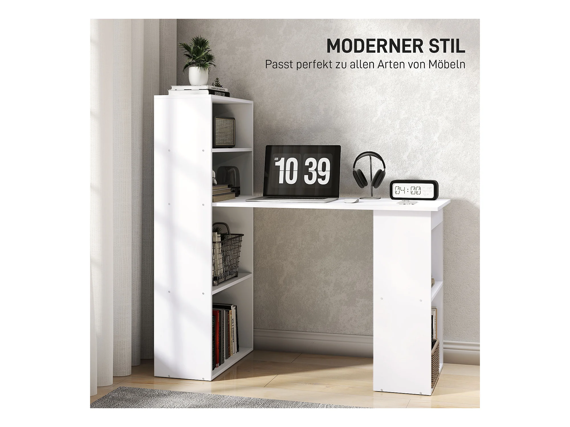 Bureau avec étagères, design moderne, contreplaqué, blanc (120x55x120cm)
