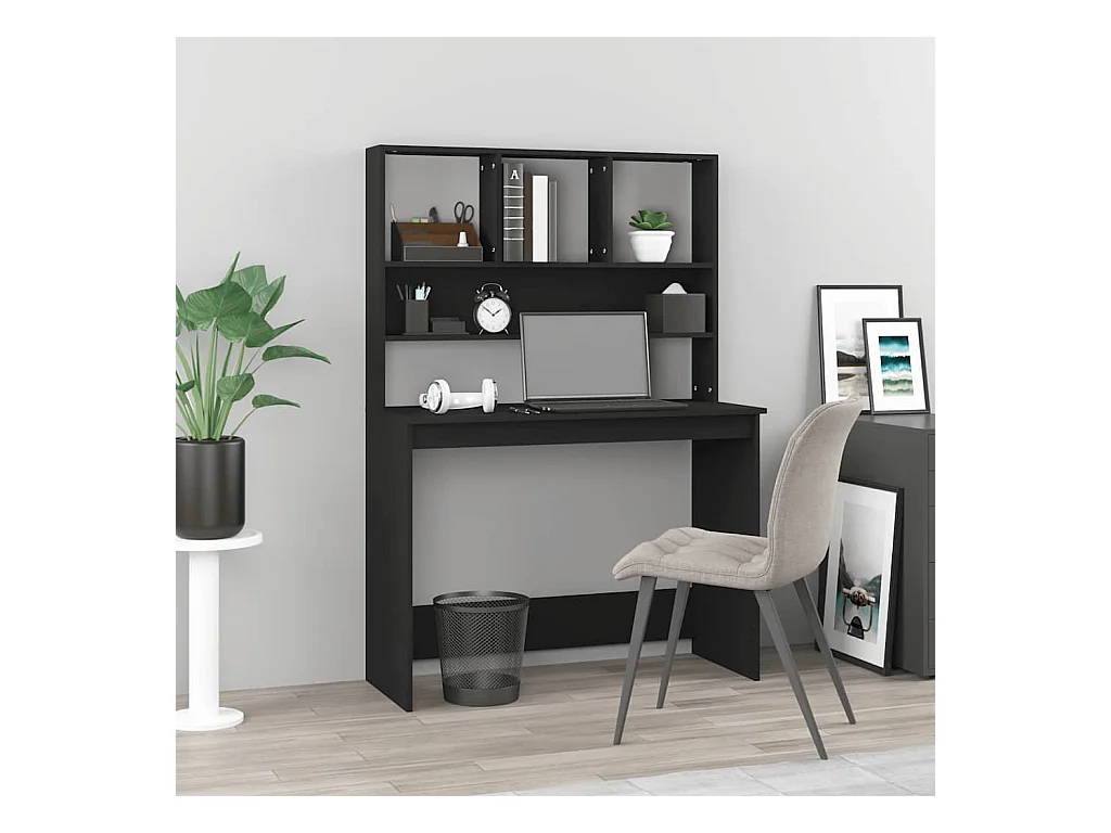 Bureau avec étagères Noir 102x45x148 cm Bois d'ingénierie